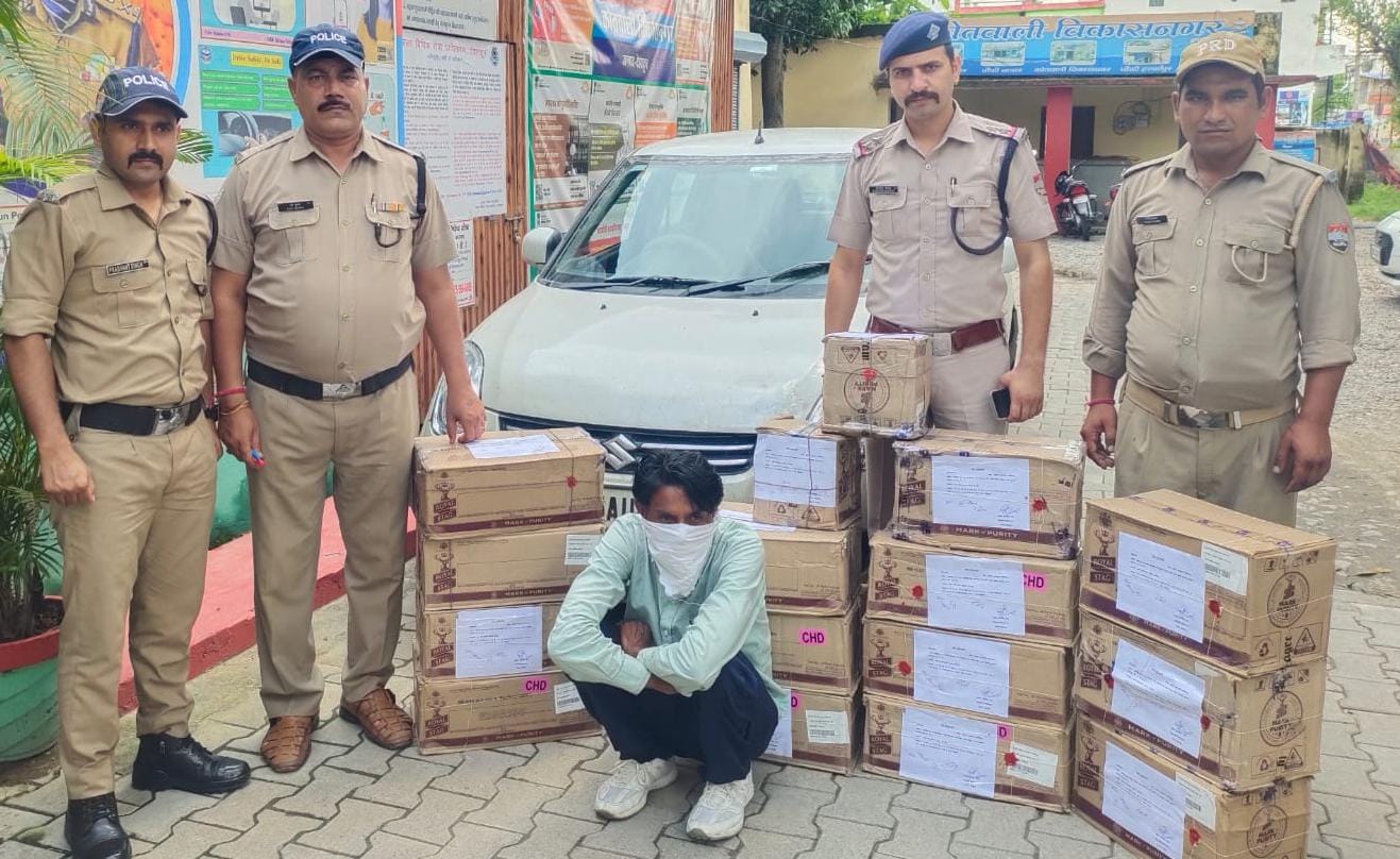 इस क्रम विकासनगर पुलिस द्वारा कार्यवाही करते हुए चैकिंग के दौरान मुखबिर की सूचना पर दिनांक: 02/07/2025 को कुल्हाल बैरियर पर एक संदिग्ध स्विफ्ट डिजायर कार को चैकिंग हेतु रोकने का इशारा किया गया तो वाहन चालक पुलिस को देखकर अपने वाहन को तेजी से कुजां की तरफ भगा ले गया, जिसे पुलिस टीम द्वारा पीछा कर पकड़ लिया गया। वाहन की तलाशी लेने पर वाहन के अन्दर से 16 पेटी (कुल 480 पव्वे व 120 अद्दे) अवैध अंग्रेजी शराब चण्डीगढ मार्का बरामद हुई, जिस पर वाहन चालक बलिन्दर पुत्र रणपाल को मौके से गिरफ्तार किया गया। अभियुक्त के विरूद्ध थाना विकासनगर पर आब0 अधिनियम का अभियोग पंजीकृत किया गया है।