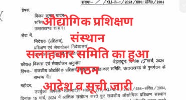 उत्तराखण्ड सरकार ने राजकीय औद्योगिक प्रशिक्षण संस्थान सलाहाकार समिति का गठन किया,जारी की गई लिस्ट देखिए कि किन नेताओं को बनाया गया सदस्य…