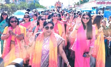 इसके पश्चय भव्य शोभायात्रा मंदिर जी से निकाली गई,तरह-तरह की झांकियां रथ यात्रा में शामिल की गई जिसकी छवि देखते ही बन रही थी।