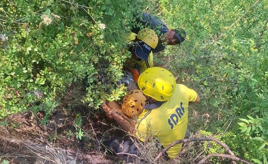SDRF द्वारा वाहन लगभग 300 मीटर नीचे खाई में गिरा था जिसमें राहत एवं बचाव कार्य किया गया।