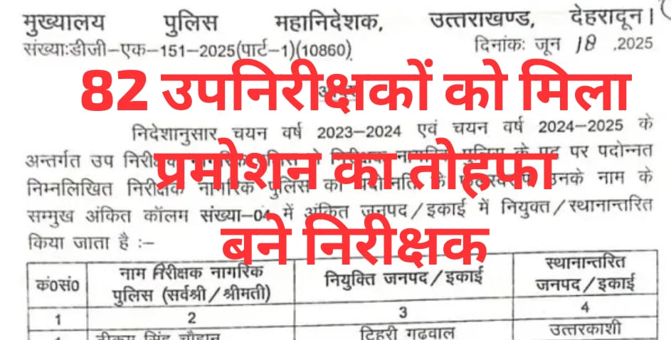 निदेशानुसार चयन वर्ष 2023-2024 एवं चयन वर्ष 2024-2025 के अन्तर्गत उप निरीक्षक नागरिक पुलिस से निरीक्षक नागरिक पुलिस के पद पर पदोन्नत निम्नलिखित निरीक्षक नागरिक पुलिस को पदोन्नति के फलस्वरूप उनके नाम के सम्मुख अंकित कॉलम संख्या-04 में अंकित जनपद/इकाई में नियुक्त / स्थानान्तरित…