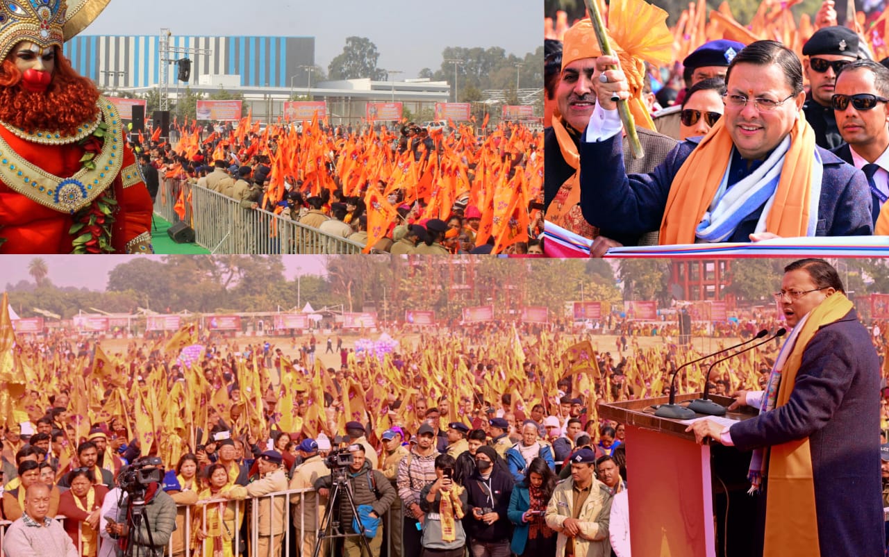 प्रदेश की राजधानी के मुख्य बाजार शनिवार को अलग रंग में नजर आए,प्रदेश के मुख्यमंत्री पुष्कर सिंह धामी ने परेड ग्राउंड देहरादून में श्री राम मंदिर प्राण प्रतिष्ठा उत्सव समिति, द्वारा आयोजित राम राज्य शोभायात्रा कार्यक्रम में प्रतिभाग किया।