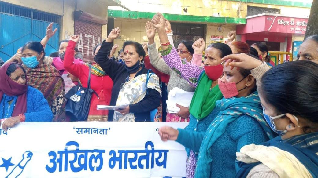 प्रदर्शन का नेतृत्व प्रान्तीय उपाध्यक्ष इन्दुनौडियाल व जिलाध्यक्ष नुरैशा अंसारी के अलावा वृन्दा मिश्रा , शाकुम्भरी रावत , कुसुम नौडियाल , सुमित्रा , जानकी , मोहनी , राजेश्वरी , भागरथी , चन्दा , शकुंतला , पुष्पा , यशोदा , विमला राणा , सतेश्वरी , गौरादेवी ,महेश्वरी , शोभा आदि बडी़ संख्या में महिलाएं शामिल थे ।