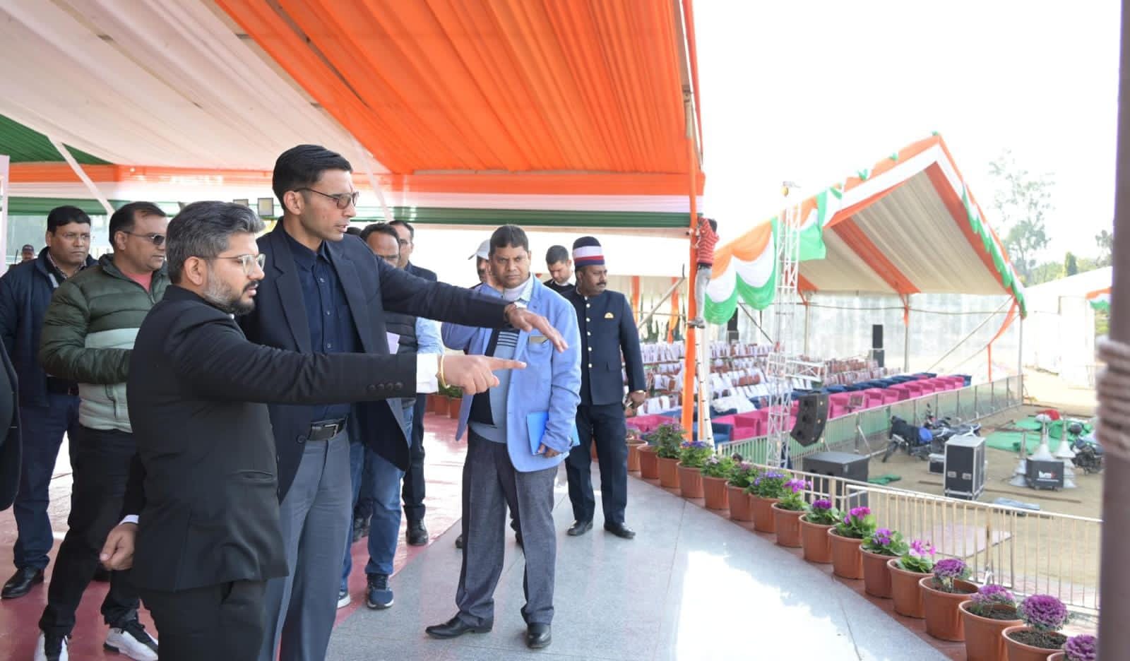 जिलाधिकारी ने प्रवेश द्वार एवं मुख्य मंच की साज-सज्जा को आकर्षक एवं गरिमामय बनाए रखने तथा मिनट-टू-मिनट कार्यक्रम के अनुसार सभी तैयारियाँ सुनिश्चित करते हुए नोडल अधिकारियों को अपने ड्यूटी प्वांइट पर तैनात रहने के निर्देश दिए।