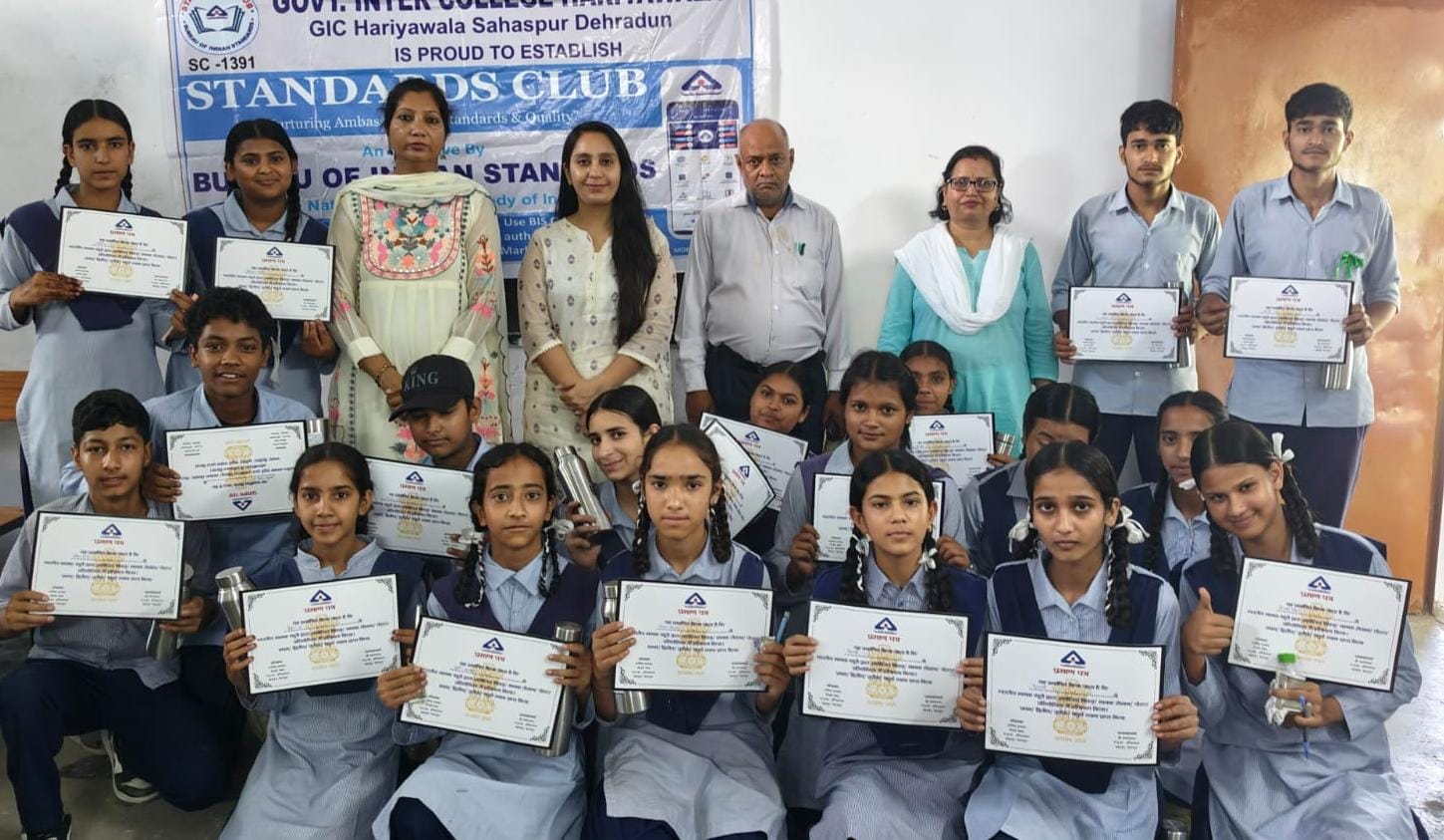 ब्यूरो ऑफ इंडियन स्टैंडर्ड्स (BIS) द्वारा विद्यार्थियों में गुणवत्ता, सुरक्षा और मानकीकरण के प्रति जागरूकता बढ़ाने के उद्देश्य से एक क्विज़ प्रतियोगिता का आयोजन शुक्रवार को राजकीय इंटर कॉलेज, हरियावाला (देहरादून) में किया गया।