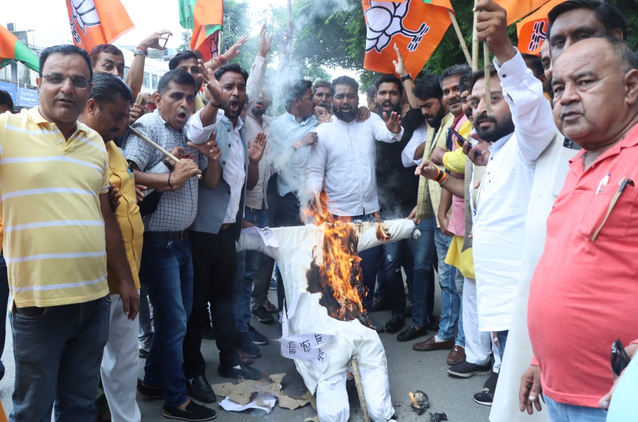 प्रदर्शनकारी भाजपाइयों ने पुतला फूंकते हुए कांग्रेस पार्टी माफी मांगो के नारे लगाए और उससे पूर्व भाजपा महानगर कार्यालय से एश्ले हॉल चौक राजपुर रोड तक पैदल मार्च भी किया।