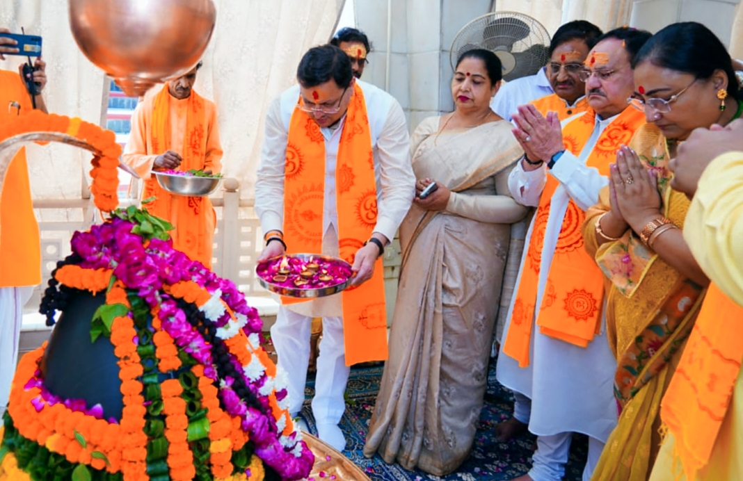 मुख्यमंत्री पुष्कर सिंह धामी एवं भाजपा राष्ट्रीय अध्यक्ष श्री जे.पी नड्डा ने देव संस्कृत विश्वविद्यालय परिसर स्थित महाकाल मंदिर में पूजा अर्चना की, तत्पश्चात उन्होंने शौर्य दीवार पर पुष्पांजलि अर्पित कर परिसर में पौधारोपण किया।