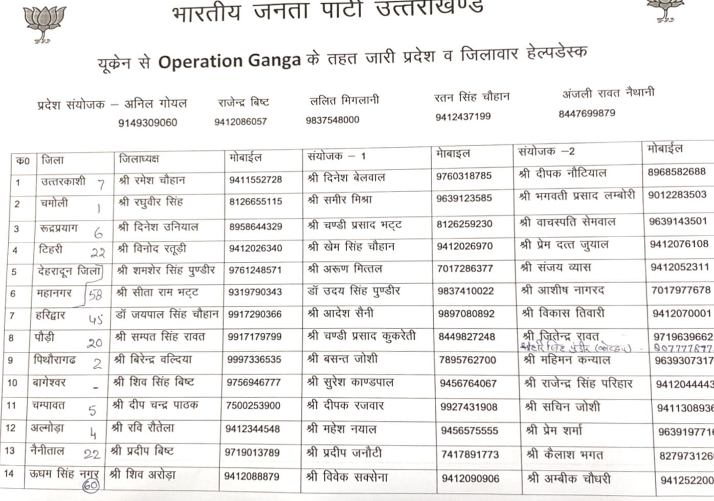 ऑपरेशन गंगा की टीम के माध्यम से यूक्रेन में फंसे लोगों की मदद करेगी बीजेपी..मनबीर – Latest News Today, Breaking News, Uttarakhand News in Hindi