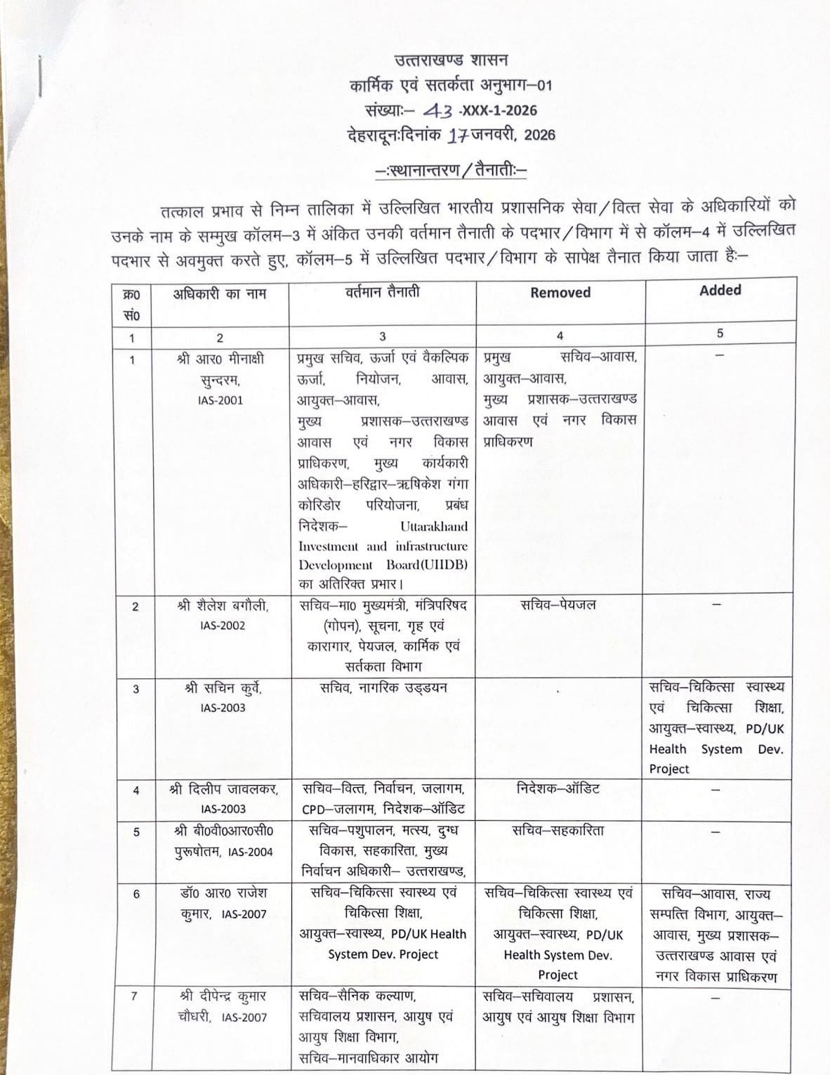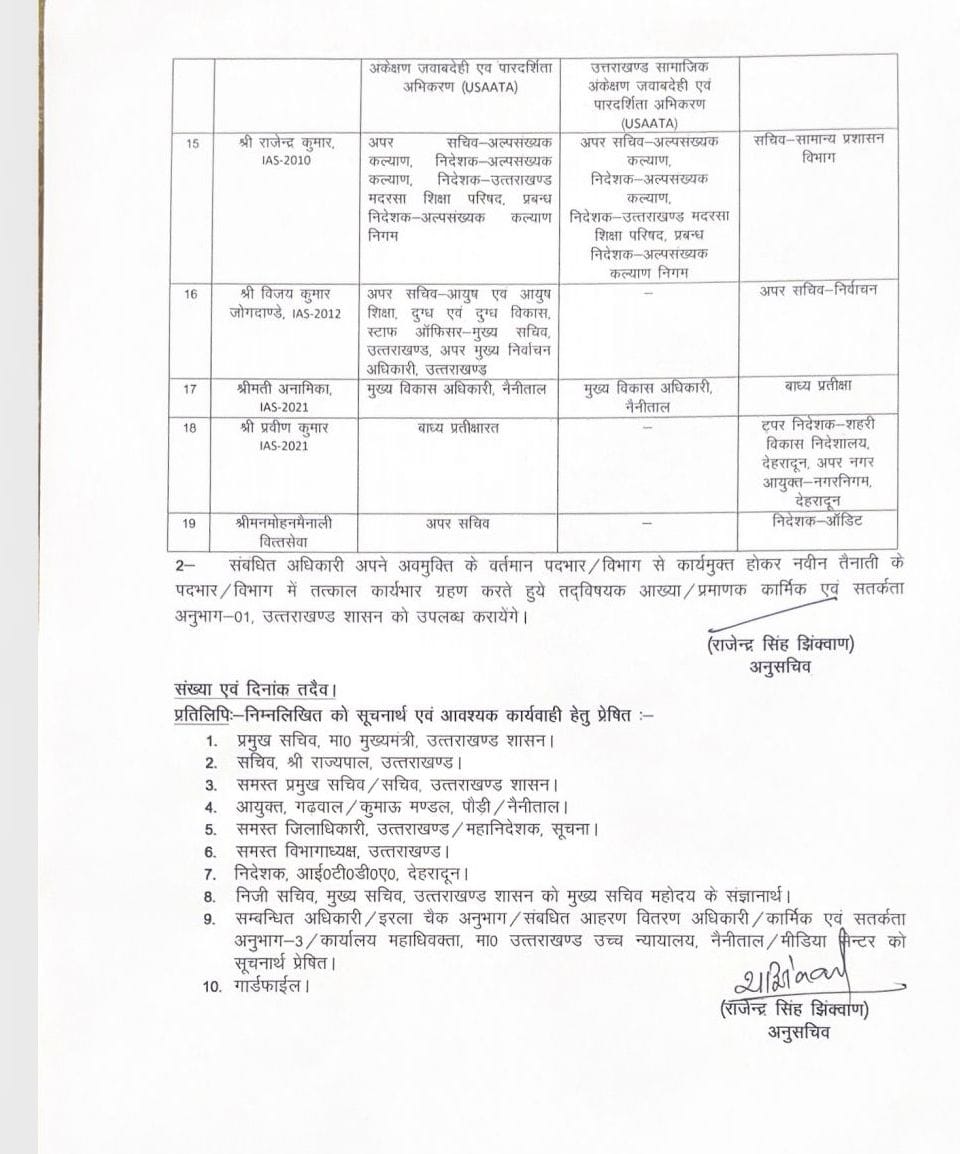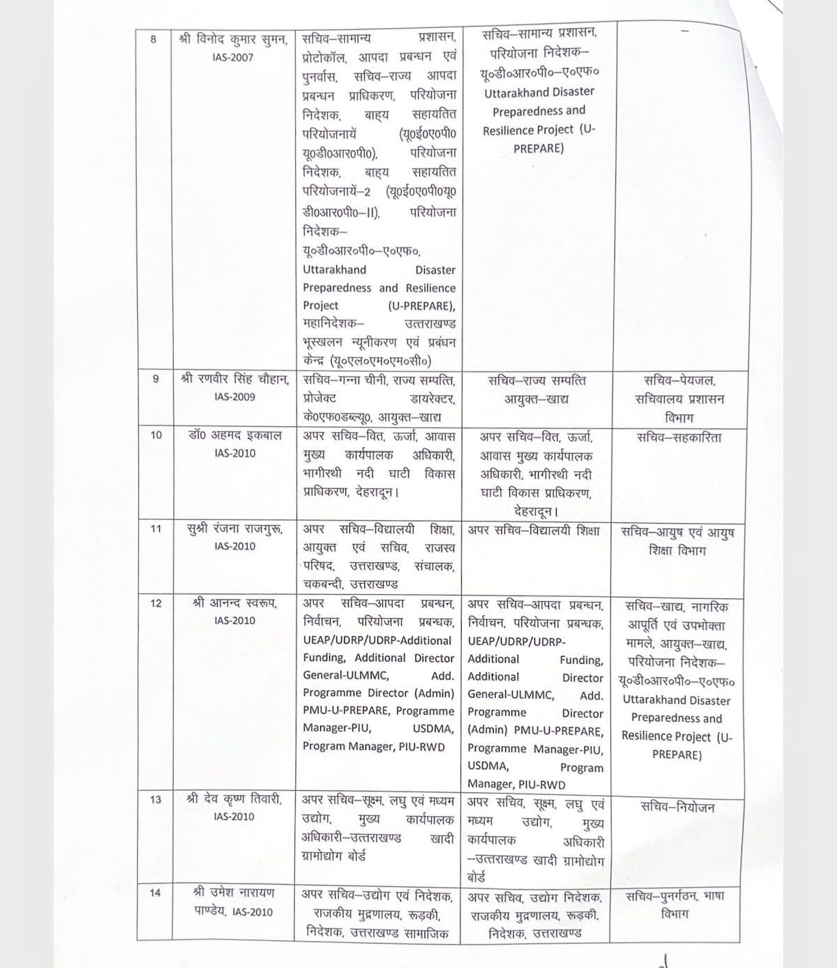 उत्तराखंड शासन द्वारा बहुप्रतीक्षित IAS और PCS अधिकारियों की बंपर ट्रांसफर लिस्ट जारी हो गई है। जिसमें डेढ़ दर्जन आई ए एस और 11 पी सी एस शामिल किए गए हैं।