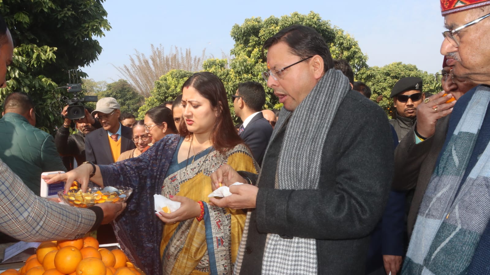 इस अवसर पर मुख्यमंत्री धामी ने अपनी धर्मपत्नी गीता पुष्कर धामी के साथ विभिन्न जनपदों के माल्टा एवं नींबू प्रजाति के फलों की प्रदर्शनी का अवलोकन कर माल्टा एवं नींबू की खटाई सहित नींबू प्रजाति के फलों से बने विभिन्न उत्पादों का स्वाद भी लिया।