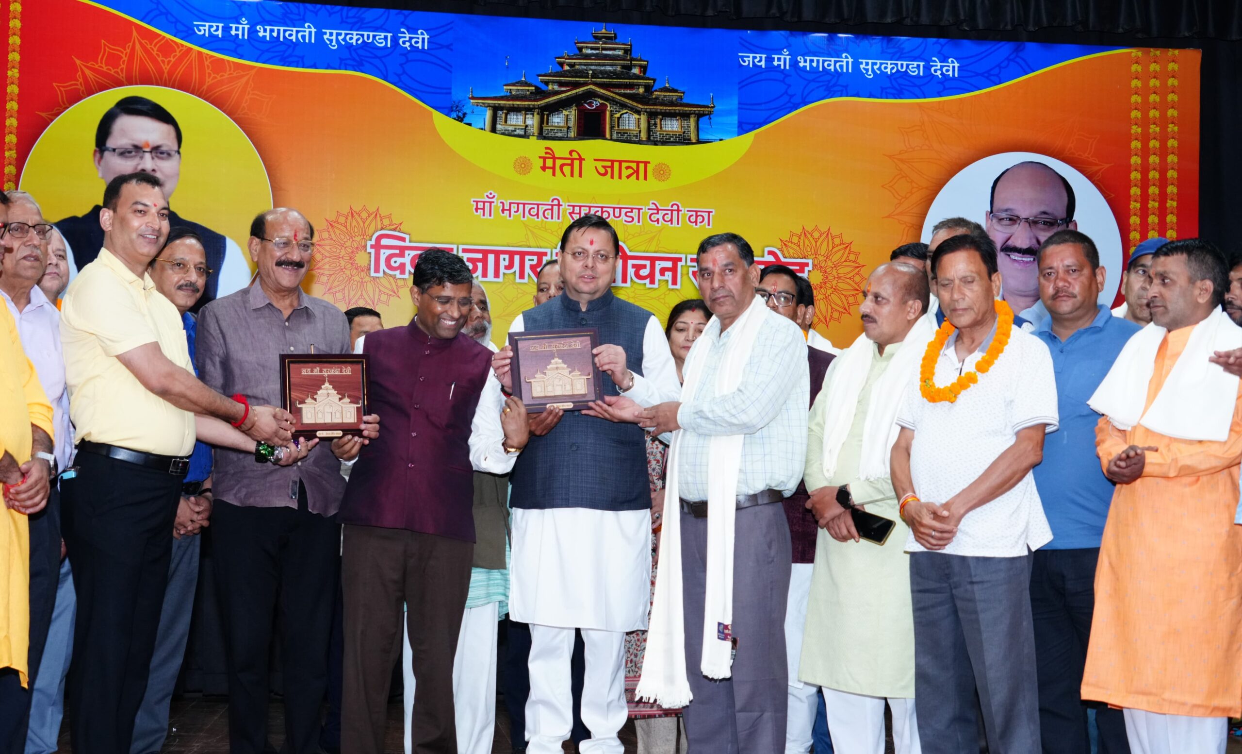 शनिवार को दून के आईआरडीटी ऑडिटोरियम में हिमालयन हेरिटेज सोसाइटी द्वारा आयोजित भगवती सुरकंडा मां दिव्य जागर विमोचन समारोह में मुख्यमंत्री शामिल हुए। उन्होंने जागर गायक प्रीतम भरतवाण के सुरकंडा देवी पर जागर का विमोचन किया।