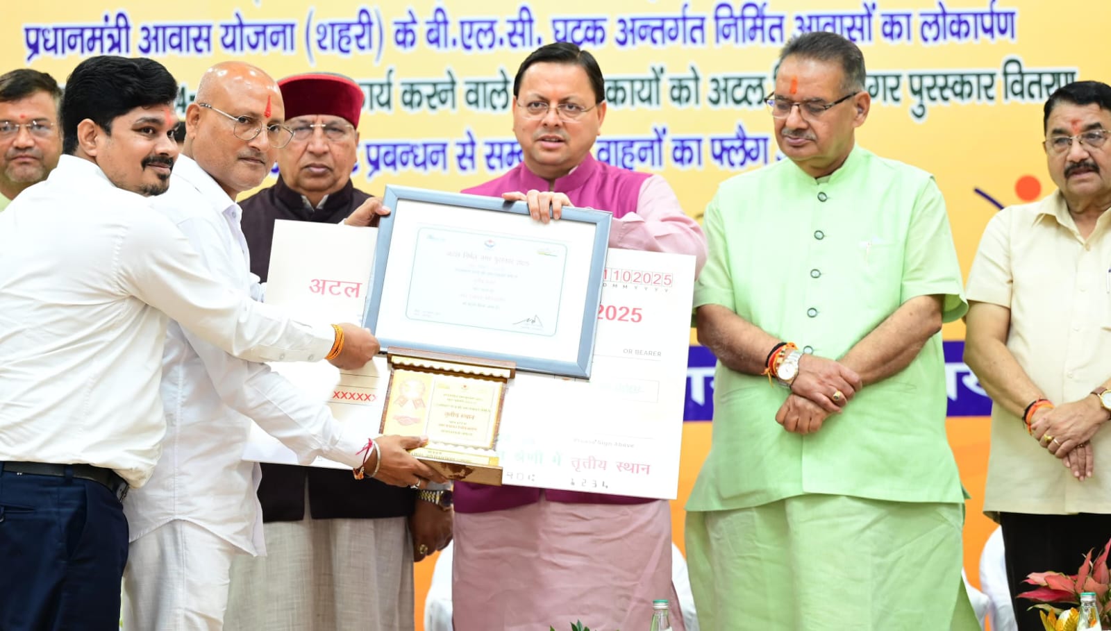 सीएम द्वारा स्वच्छता सर्वेक्षण 2024-25 में उत्कृष्ट कार्य करने वाले नगर निकायों को अटल निर्मल नगर पुरस्कार प्रदान किए गए। मुख्यमंत्री ने रुद्रपुर नगर निगम को प्रथम, पिथौरागढ़ नगर निगम को द्वितीय तथा कोटद्वार नगर निगम को तृतीय अटल निर्मल नगर पुरस्कार 2025 से सम्मानित किया। इसके साथ ही मसूरी नगर पालिका परिषद को प्रथम, डोईवाला नगर पालिका परिषद को द्वितीय तथा भीमताल को तृतीय अटल निर्मल नगर पुरस्कार 2025 से सम्मानित किया गया।