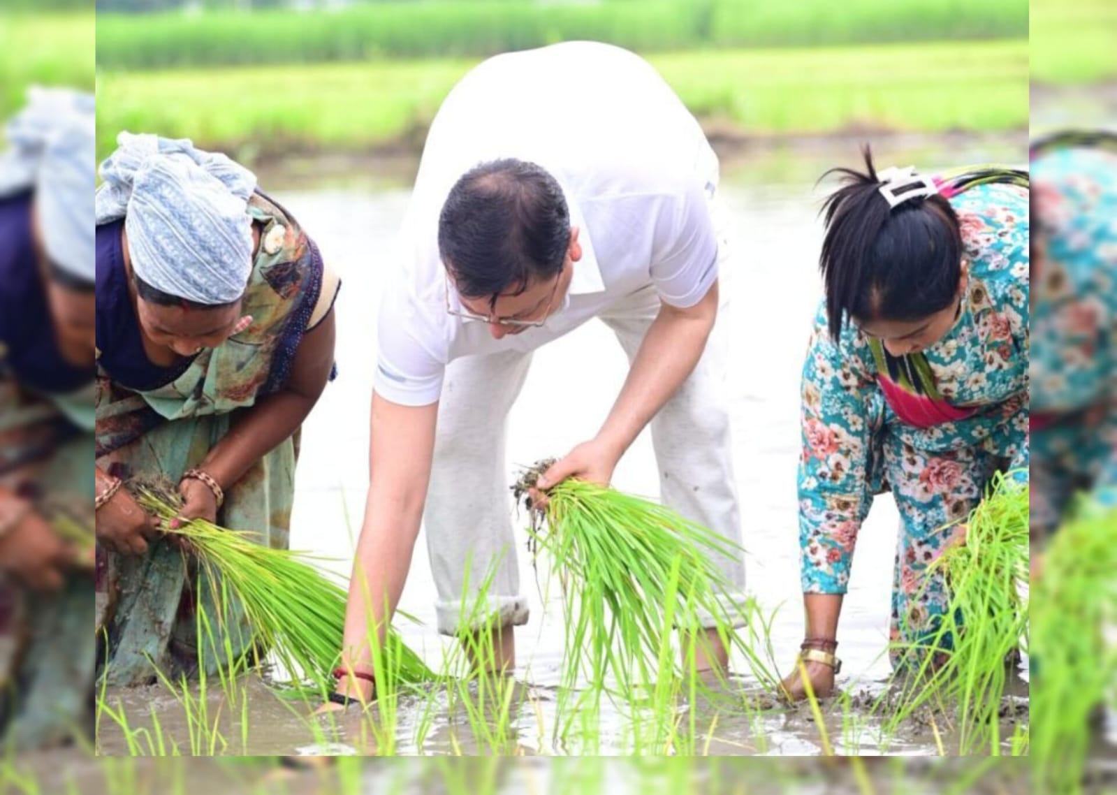 खटीमा के नगरा तराई क्षेत्र में उत्तराखंड के मुख्यमंत्री पुष्कर सिंह धामी ने शनिवार को अपने पारिवारिक खेत में पारंपरिक रूप से धान की रोपाई कर किसानों के परिश्रम, त्याग और समर्पण को नमन किया। उन्होंने कहा कि खेतों में उतरकर उनकी पुराने दिनों की यादें ताजा हो गईं। कहा कि अन्नदाता न केवल हमारी अर्थव्यवस्था की रीढ़ हैं, बल्कि वे हमारी संस्कृति और परंपराओं के संवाहक भी हैं।