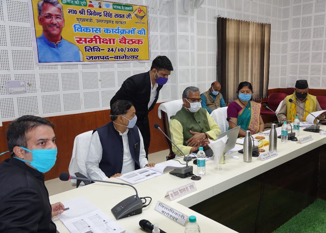 मुख्यमंत्री त्रिवेन्द्र सिंह रावत ने विकास भवन सभागार बागेश्वर में अधिकारियों के साथ विभिन्न योजनाओं/कार्यों की समीक्षा बैठक की। उन्होंने शासकीय योजनाओं की अद्यतन प्रगति की जानकारी प्राप्त करते हुए विकास कार्यों में और तेजी लाने के निर्देश दिये। उन्होंने कहा कि राज्य सरकार विकास एवं जनकल्याणकारी योजनाओं के माध्यम से प्रदेश की जनता को लाभान्वित करने के लिए प्रतिबद्ध है।