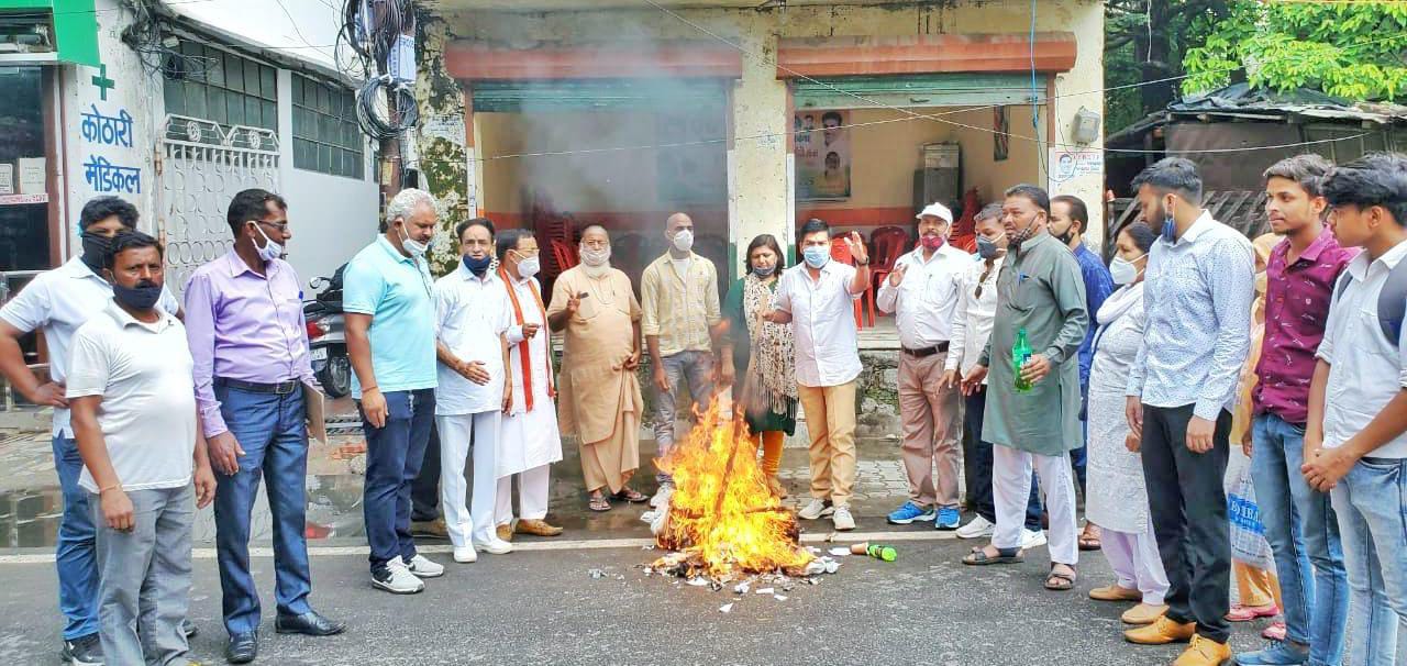 कांग्रेस ने बीजेपी एमएलए का पुतला फूंका