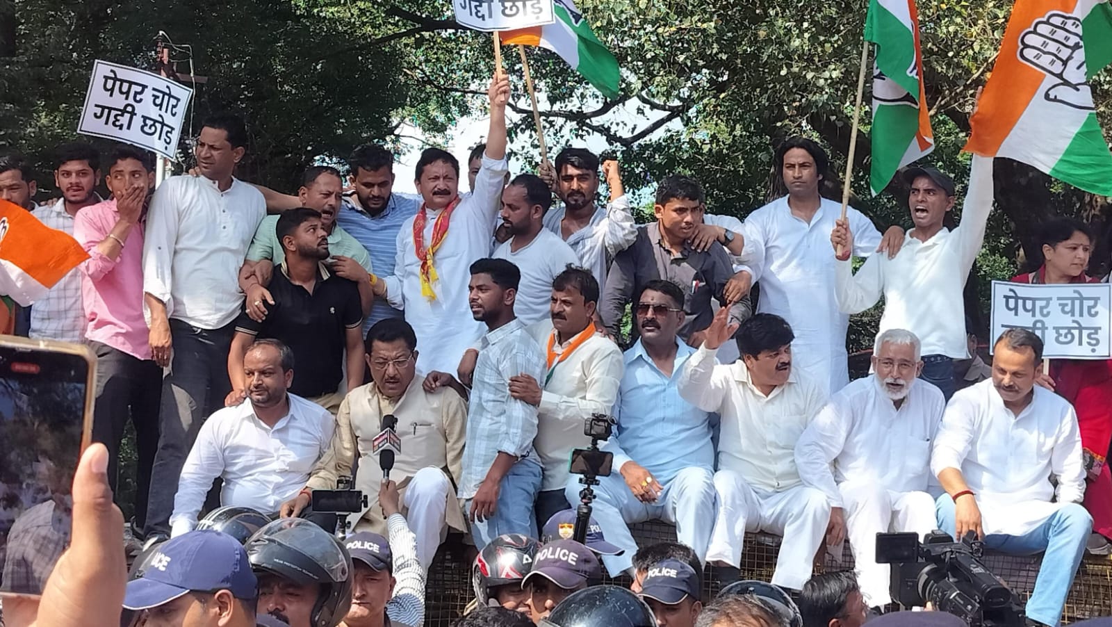 UKSSSC की स्नातक स्तरीय भर्ती परीक्षा पेपर लीक प्रकरण की सीबीआई जांच हाईकोर्ट के सिटिंग जज की निगरानी में कराने, यूकेएसएसएससी के अध्यक्ष गणेश सिंह मर्तोलिया की तत्काल बर्खास्तगी और स्नातक स्तरीय भर्ती परीक्षा को निरस्त कर परीक्षा की नई तिथियां शीघ्र घोषित करने की मांग को लेकर शुक्रवार को प्रदेश कांग्रेस ने मुख्यमंत्री आवास कूच किया।