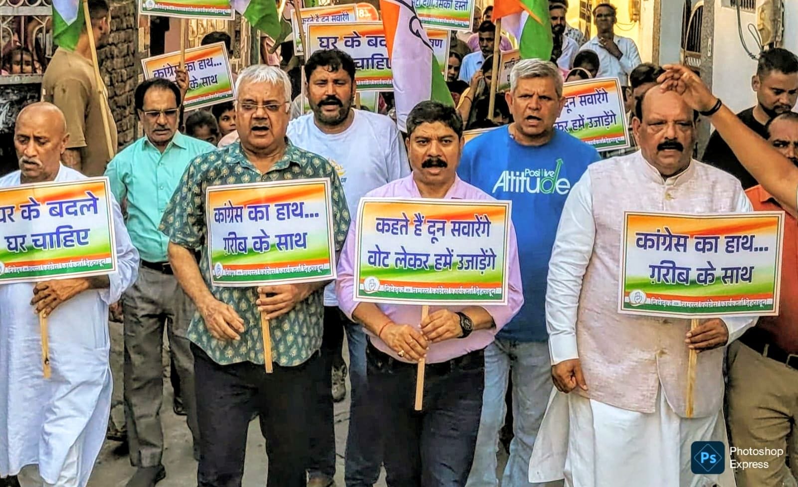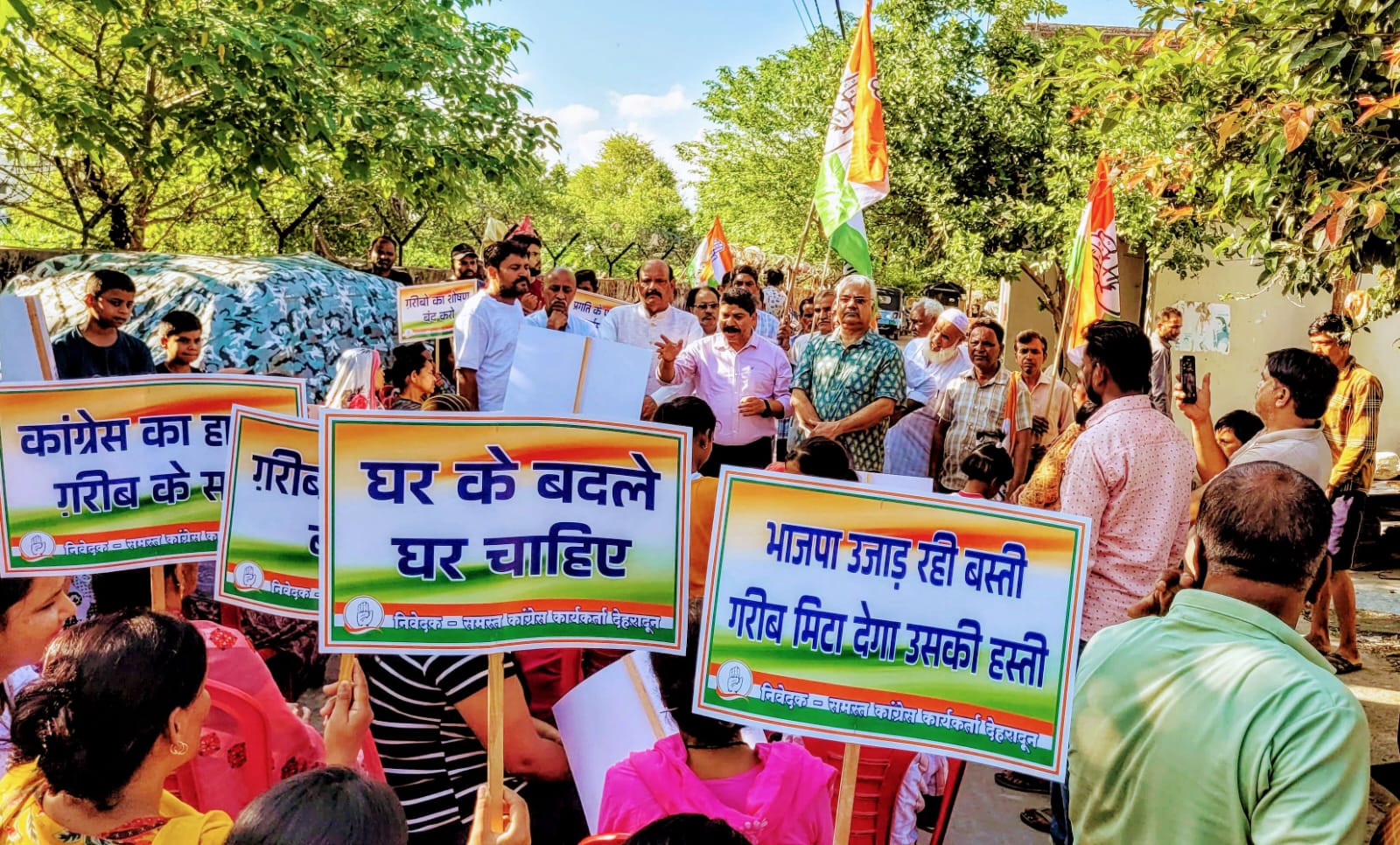 इस दौरान कांग्रेस कार्यकर्ता हाथ में तख्तियां लेकर प्रगति के पथ पर पुनर्वास के साथ, कांग्रेस का हाथ गरीबों के साथ, घर के बदले घर चाहिए, विकास के साथ प्रभावितों का भी ख्याल रखें सरकार, विकास करो उजाड़ो मत पुनर्वास करो आदि नारे के साथ निकले। कार्यकर्ताओं ने बस्ती में पदयात्रा निकालने के दौरान लोगों से कहा कि वे उनके साथ हैं और हमेशा उनके साथ खड़े रहेंगे।