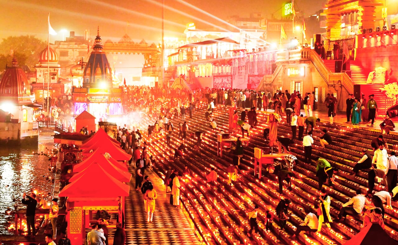 मुख्यमंत्री पुष्कर सिंह धामी ने सोमवार को हर की पैड़ी, हरिद्वार में आयोजित गंगा दीप महोत्सव कार्यक्रम में प्रतिभाग करते हुए मां गंगा की पूजा अर्चना एंव गंगा आरती में सम्मलित होकर प्रदेश की सुख समृद्धि एवं तरक्की की कामना की। इस दौरान हर की पैड़ी स्थित पुलिस चौकी का लोकार्पण भी मुख्यमंत्री द्वारा किया गया।
