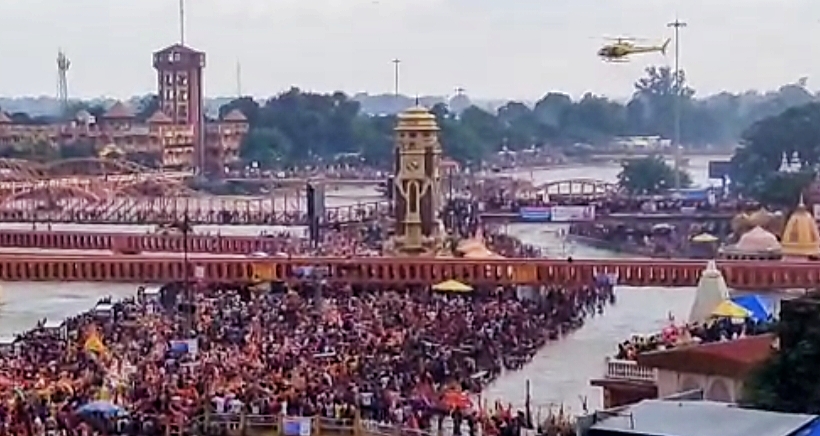 कावड़ियों के स्वागत में हरिद्वार में हेलीकॉप्टर से हुई पुष्पवर्षा से श्रद्धालु हुए गदगद,सीएम पहले ही कर चुके हैं पैर धोकर स्वागत अभिनन्दन