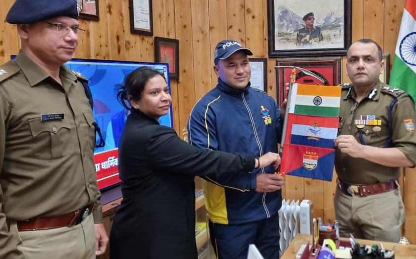 फ्लैग ऑफ सेरेमनी के दौरान मौजूद पुलिस महानिरीक्षक SDRF द्वारा भी राजेन्द्र को शुभकानाएं प्रेषित की गई। इस दौरान महोदया द्वारा विचार साझा करते हुए बताया गया कि SDRF में पर्वतारोहण का विशेष महत्व है।
