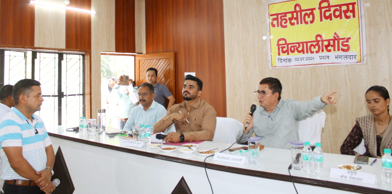 जिलाधिकारी डॉ. मेहरबान सिंह बिष्ट की अध्यक्षता में चिन्यालीसौड़ में आयोजित तहसील दिवस में जन-समस्याओं से संबंधित कुल 29 मामले प्रस्तुत किए गए। तहसील गठन के बाद से चिन्यालीसौड़ में यह पहला तहसील दिवस था जिसमें जिलाधिकारी ने प्रतिभाग किया। तहसील दिवस में प्राप्त प्रकरणों को तत्काल मुख्यमंत्री जन समर्पण पोर्टल पर दर्ज करने के साथ ही अधिकांश प्रकरणों का मौके पर ही निस्तारण किया गया। तहसील दिवस में राष्ट्रीय राजमार्ग खंड बड़कोट, लोनिवि चिन्यालीसौड़ तथा ब्रिडकुल के अधिशासी अभियंता की अनुपस्थिति पर गहरी नाराजगी व्यक्त करते हुए जिलाधिकारी ने कारण बताओ नोटिस जारी किया है।