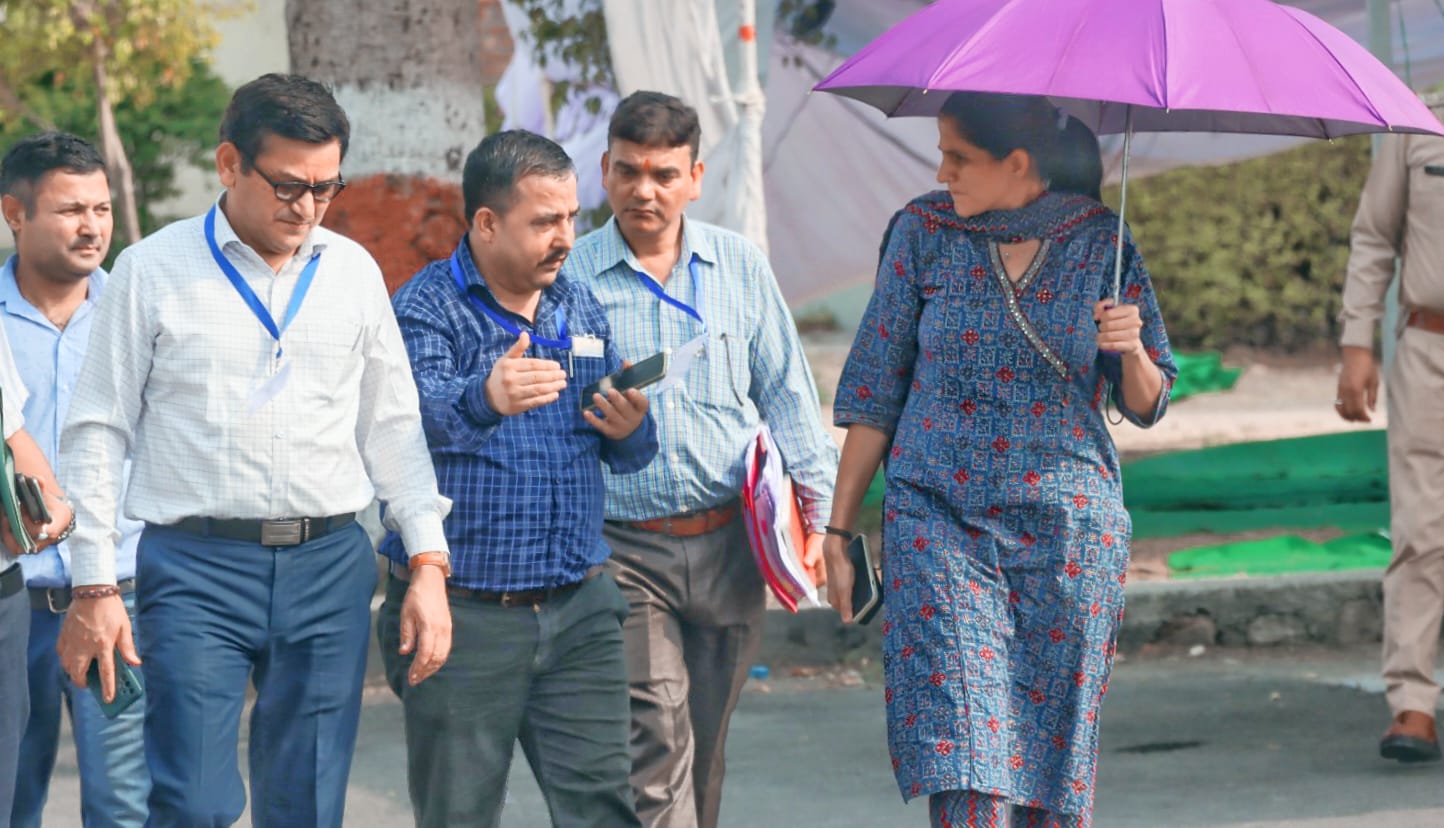 जिलाधिकारी/जिला निर्वाचन अधिकारी सोनिका ने महाराणा प्रताप स्पोर्ट कालेज का निरीक्षण कर मतगणना तैयारियों का जायजा।