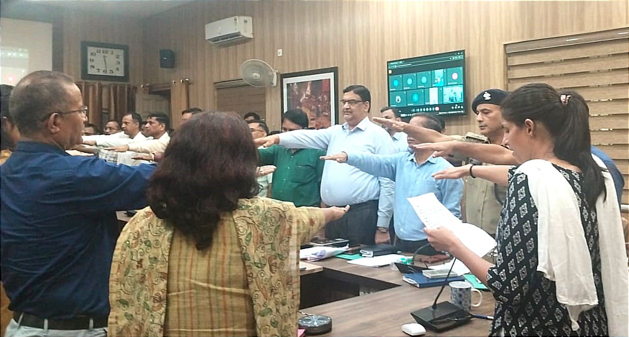जिलाधिकारी सोनिका ने कलेक्ट्रेट के ऋषिपर्णा सभागार में उपस्थित अधिकारियों के साथ नशामुक्ति की शपथ दिलाई।