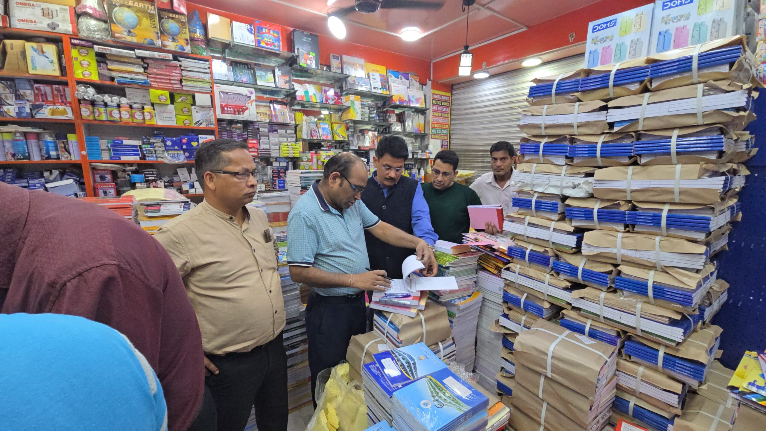 डीएम सविन बंसल के आदेश के अंतर्गत शहर के बड़े किताब कॉपियों के विक्रेताओं के यहां शनिवार को छापेमारी की गई।