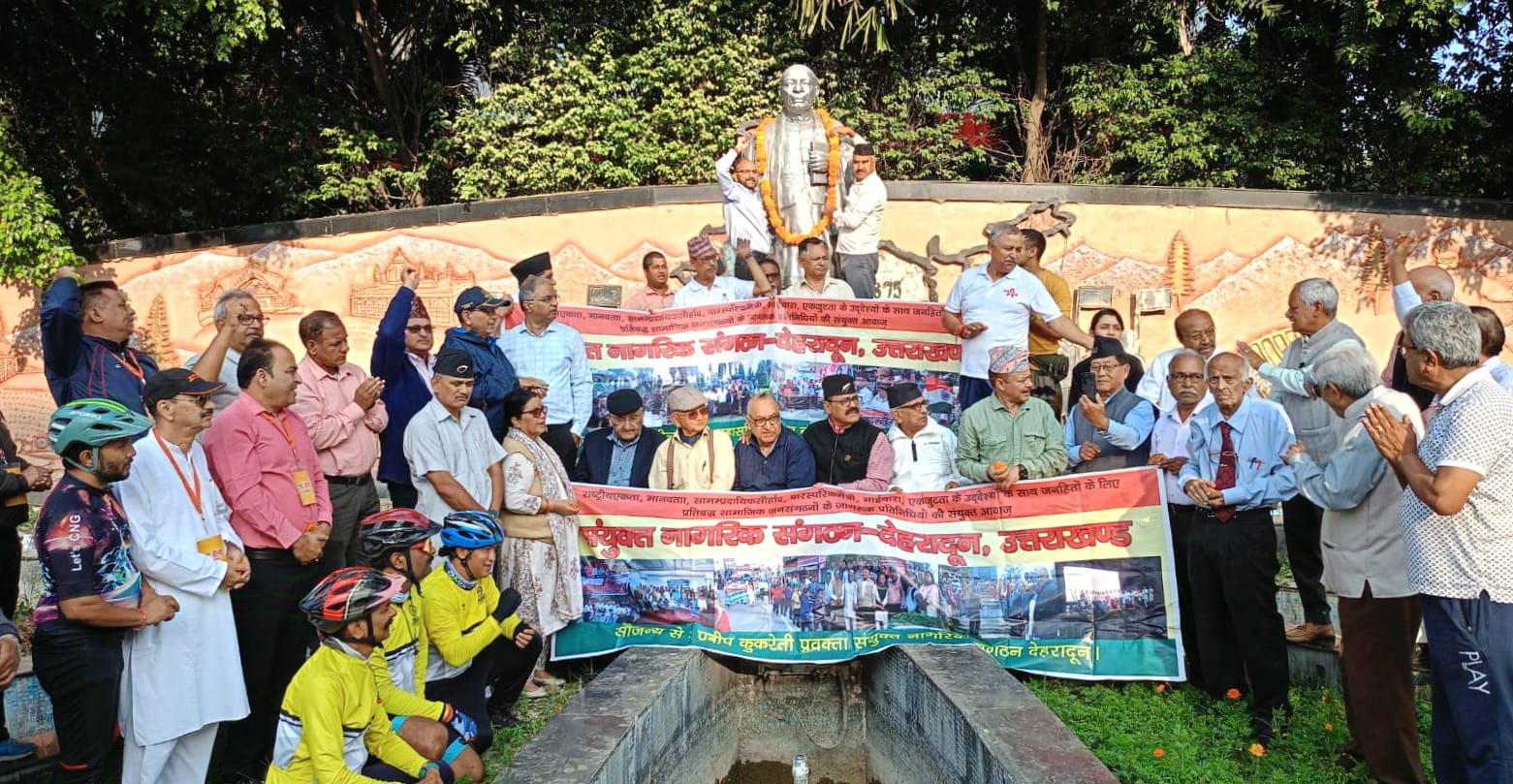 ये विचार राष्ट्रीय एकता दिवस पर संयुक्त नागरिक संगठन के तत्वाधान में पटेल पार्क में लौह पुरुष सरदार वल्लभ भाई पटेल की 149 वीं जयंती पर आयोजित पुष्पांजलि के दौरान शामिल लोगों के थे। इसमें पूर्व सैन्य अधिकारियों, राज्य सरकार के सेवानिवृत अधिकारियों, स्वतंत्रता संग्राम सेनानी परिवारों, राज्य आंदोलनकारी, पर्यावरण प्रेमीजन, मैड तथा पैडलर टीम के युवाओं तथा सामाजिक संस्थाओं के प्रतिनिधियों ने भाग लिया।