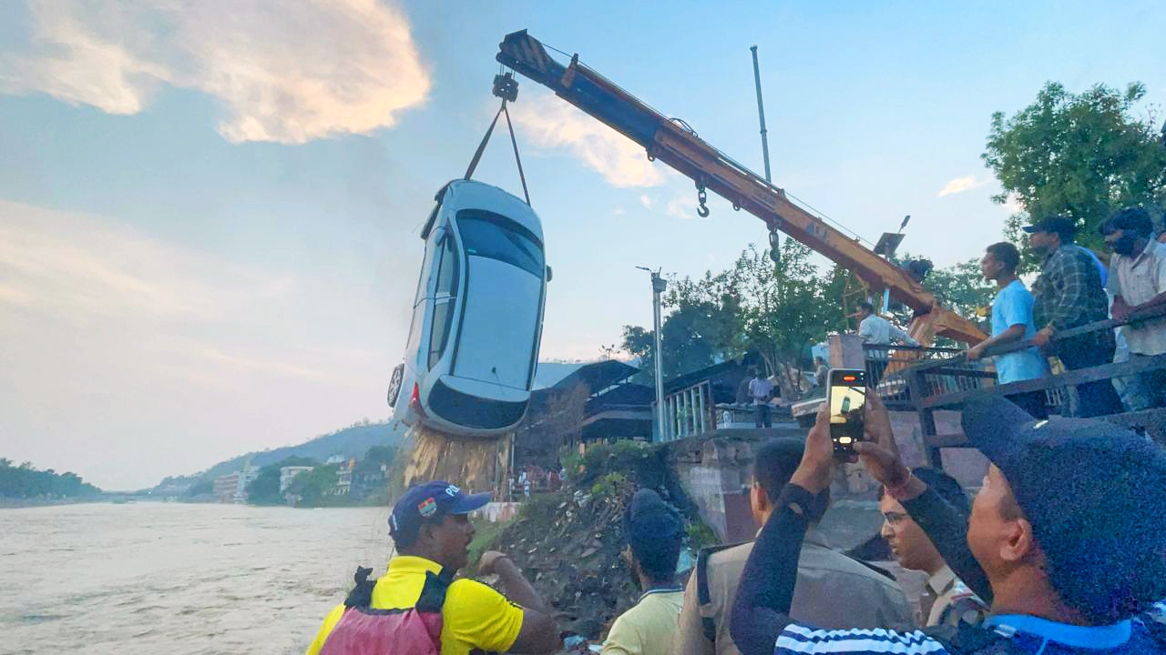 मौके पर पहुँचकर SDRF टीम द्वारा नदी में फंसी कार को क्रेन की सहायता से बाहर निकाला। अभी तक किसी जनहानि की सूचना नही है।