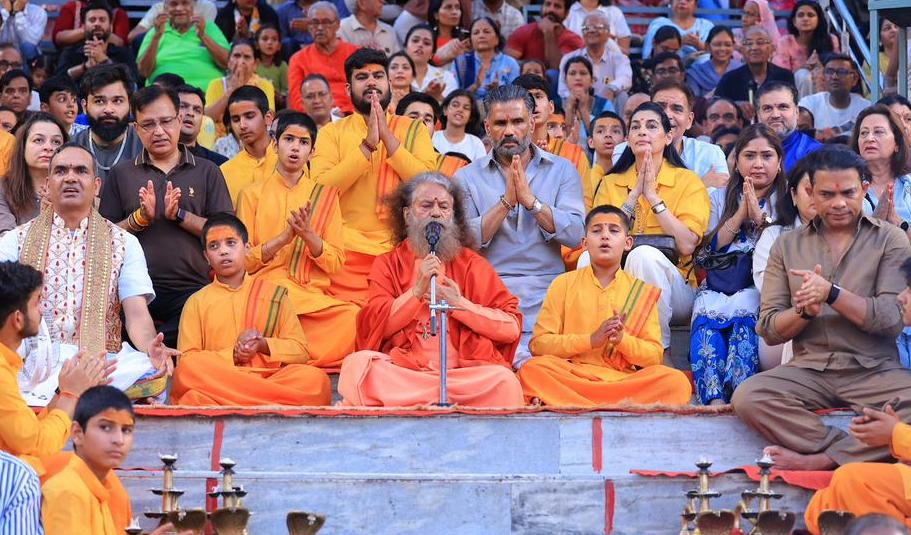 सुनील शेट्टी, उनकी धर्मपत्नी माना शेट्टी और उनके ईष्ट मित्रों ने श्रद्धाभाव से गंगा पूजन किया तथा राष्ट्र, समाज और समस्त मानवता के कल्याण, सुख-शांति एवं समृद्धि हेतु प्रार्थना की।