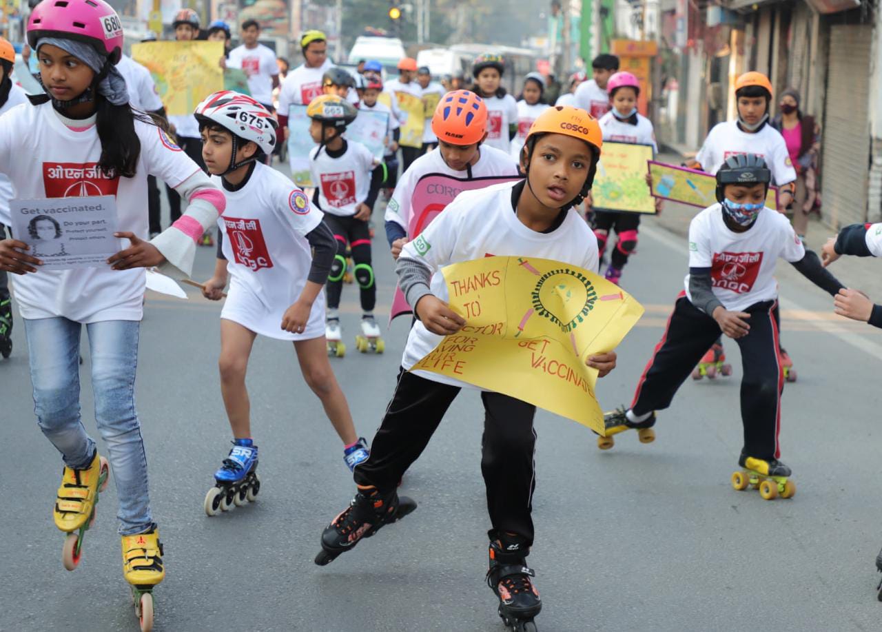 कोविड जागरूकता के लिए स्केटिंग रैली ओएनजीसी और इफको के साथ संयुक्त तत्वावधान में आयोजित की गई।