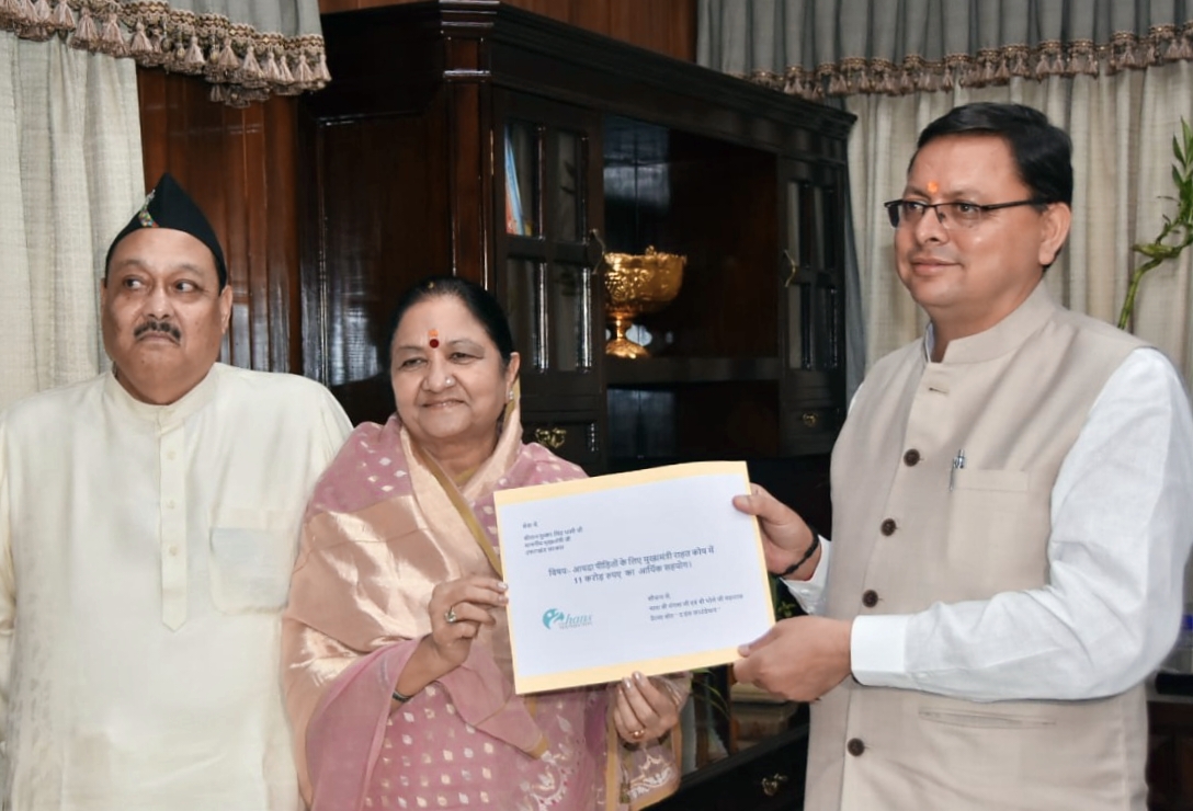 प्रदेश के आपदा पीड़ितों के लिए हंस फाउण्डेशन संस्थापक माता मंगला एवं भोले महाराज ने मुख्यमंत्री राहत कोष में सीएम धामी को सौंपा 11 करोड़ का चेक