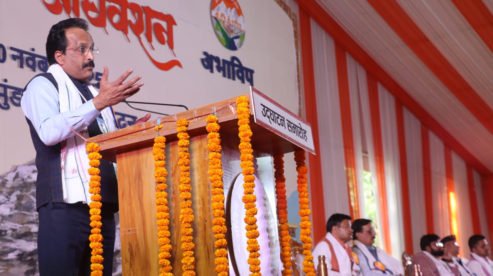 इस अवसर पर अभाविप के नवनिर्वाचित राष्ट्रीय अध्यक्ष प्रो. (डा.) रघुराज किशोर तिवारी, पुनर्निर्वाचित राष्ट्रीय महामंत्री डा. वीरेंद्र सिंह सोलंकी, अभाविप की राष्ट्रीय मंत्री कु. क्षमा शर्मा, अभाविप राष्ट्रीय अधिवेशन की स्वागत समिति अध्यक्ष एवं ग्राफिक एरा विश्वविद्यालय के संस्थापक अध्यक्ष डा. कमल घनशाला, स्वागत समिति महामंत्री एवं उत्तराखण्ड जलागम परिषद के उपाध्यक्ष रमेश गड़िया, उत्तराखण्ड अभाविप प्रांत अध्यक्ष डा.जे.पी.भट्ट एवं उत्तराखण्ड अभाविप प्रांत मंत्री ऋषभ रावत मंच पर उपस्थित रहे।