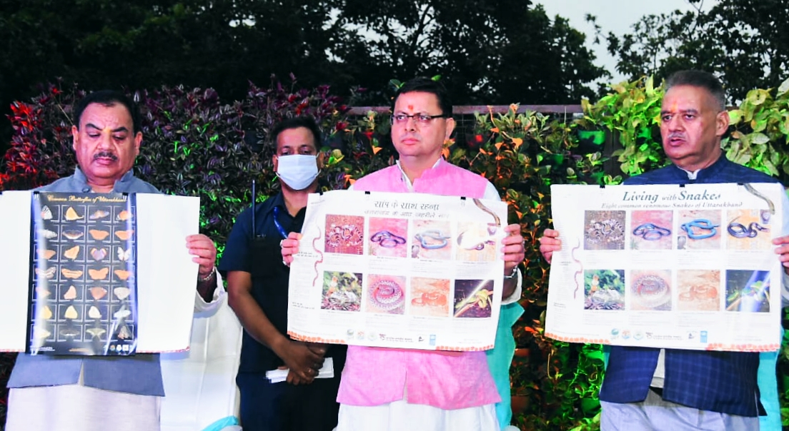 मुख्यमंत्री ने कहा कि राज्य की अवधारणा के मूल में ऊर्जा एवं पर्यटन को राज्य की आर्थिकी का मजबूत आधार माना गया था। हम इस दिशा में प्रयासरत है। मुख्यमंत्री ने सभी से राज्य के विकास में सहयोगी बनने की अपेक्षा करते हुए कहा कि हमें जो भी जिम्मेदारी मिली है। हम उसे पूरी निष्ठा एवं इमानदारी के साथ निभाये ताकि हमें इसमें पछतावा न हो, पूरे मनोयोग से बेहतर ढ़ंग से कार्य करने वालों की ईश्वर भी मदद करता है। इससे आत्म सन्तुष्टि भी मिलती है, मुख्यमंत्री ने कहा कि हमारा लक्ष्य समाज के अन्तिम पंक्ति में खड़े व्यक्ति तक विकास का लाभ पहुचाना है सभी के सहयोग से हम इसमें अवश्य सफल होंगे। इस अवसर पर मुख्यमंत्री ने प्रदेश के सांप, तितली एवं बांज वृक्ष पर आधारित तीन पोस्टर, कामन वर्ड ऑफ उत्तराखण्ड कॉफी टेबल बुक तथा स्कूलों के लिये दी जाने वाली ई-बुक का भी लोकार्पण किया।