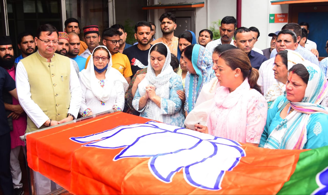 मुख्यमंत्री पुष्कर सिंह धामी ने बलबीर रोड, स्थित भाजपा कार्यालय में केदारनाथ विधायक शैलारानी रावत के पार्थिव शरीर पर पुष्पचक्र अर्पित कर श्रद्धांजलि दी।
