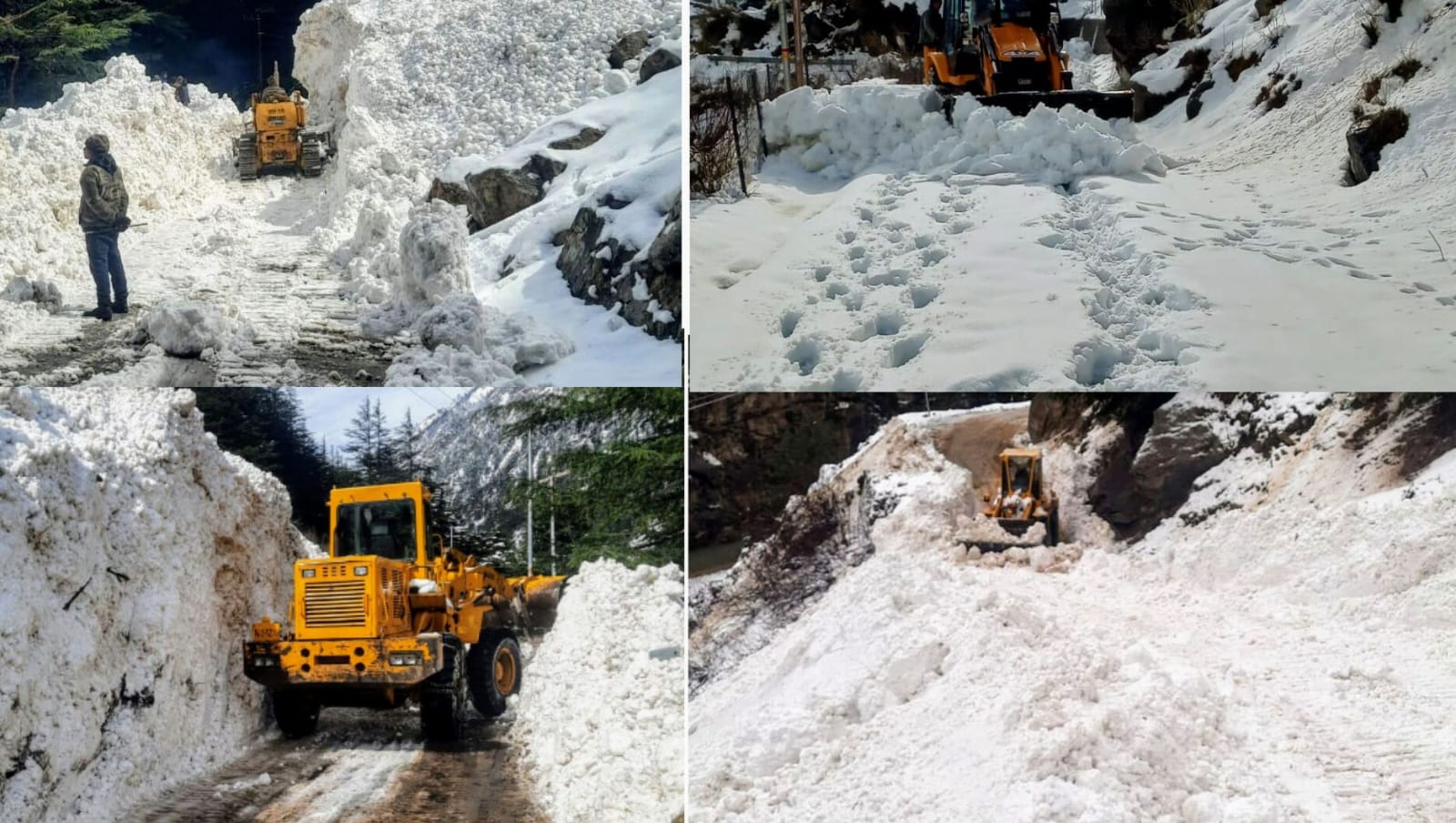 पिछले दिनों लगातार हुए हिमपात के कारण सीमांत टकनौर क्षेत्र में अवरूद्ध सड़कों को खोलने तथा क्षतिग्रस्त हुई बिजली की ट्रांसमिशन लाईनों की मरम्मत का काम शनिवार को दिन भर युद्धस्तर पर जारी रहा।