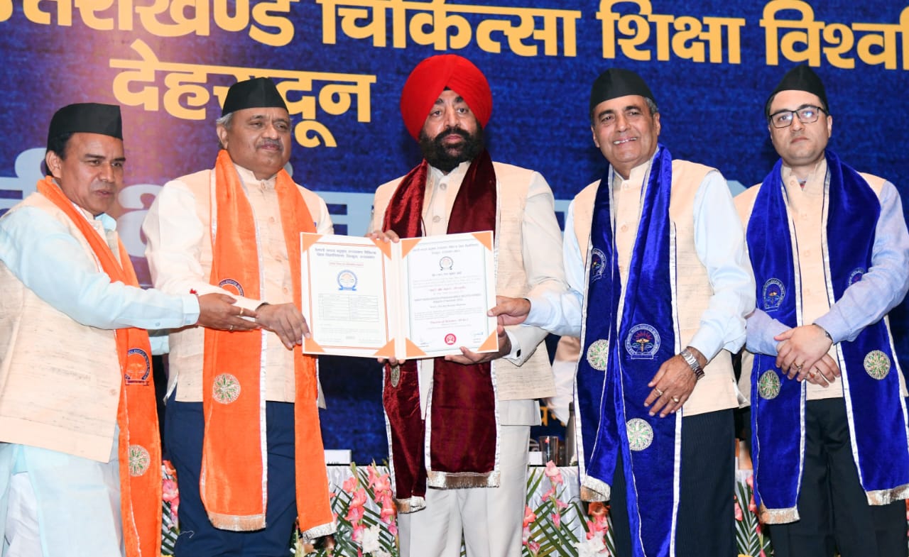 राज्यपाल लेफ्टिनेंट जनरल गुरमीत सिंह (से नि) ने बुधवार को एफआरआई सभागार में हेमवती नंदन बहुगुणा चिकित्सा शिक्षा विश्वविद्यालय के पांचवें दीक्षांत समारोह में बतौर मुख्य अतिथि प्रतिभाग किया। दीक्षांत समारोह में विभिन्न विषयों में उत्तीर्ण 1355 छात्र-छात्राओं को उपाधियां व उच्च अंक प्राप्त करने वाले 34 छात्र-छात्राओं को मेडल प्रदान किये। इस अवसर पर राज्यपाल ने चिकित्सा एवं चिकित्सा विज्ञान के क्षेत्र में अतुलनीय योगदान देने वाले प्रो. राज कुमार शर्मा व डॉ. ले.ज. वेद चतुर्वेदी (रि.) को डी.एस.सी. (डॉक्टर ऑफ साइंसेज) की मानद उपाधि और श्रीमती लीला बिष्ट व श्रीमती लीला मसीह को डॉक्टरेट की मानद उपाधि प्रदान की।
