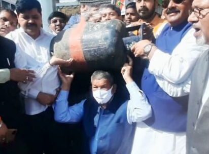 हरदा ने महंगाई के खिलाफ उठाया सिलिंडर, गणेश गोदियाल ने कहा भाजपा सरकार की संवेदनहीनता के चलते, त्राहि-त्राहि कर रही जनता