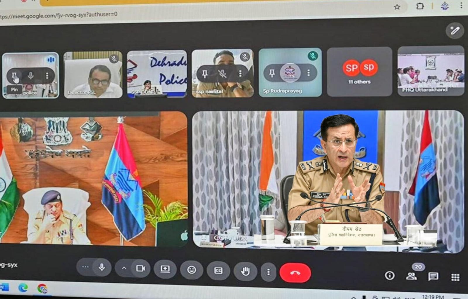 डीजीपी उत्तराखंड दीपम सेठ की अध्यक्षता में बुधवार को वीडियो कॉन्फ्रेंसिंग के माध्यम से गढ़वाल एवं कुमाऊ रेंज सहित समस्त जनपदों के वरिष्ठ/पुलिस अधीक्षकों के साथ एक महत्वपूर्ण उच्च स्तरीय समीक्षा बैठक आयोजित की गई।