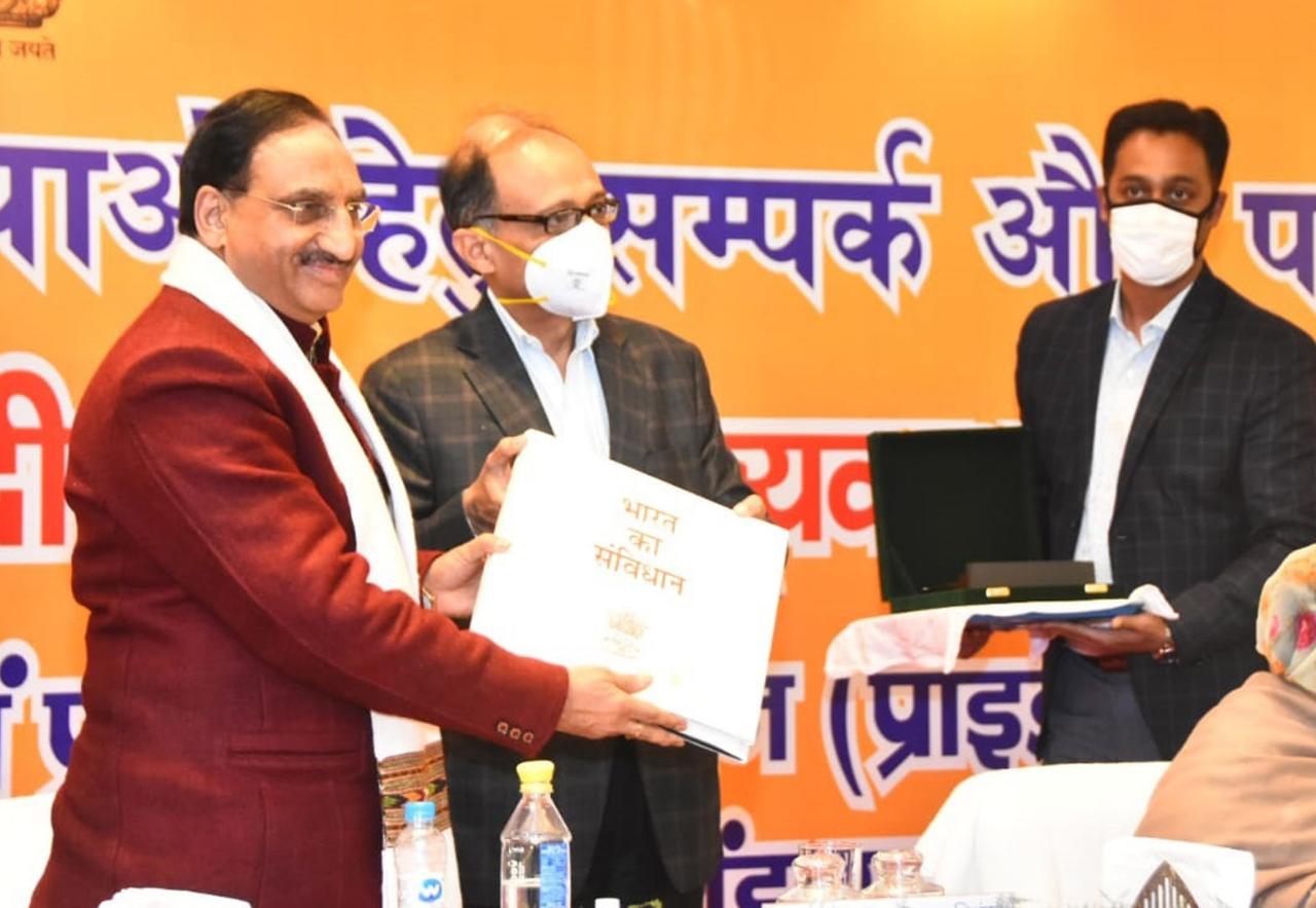 शिक्षा मंत्री भारत सरकार डॉ. रमेश पोखरियाल ‘निशंक’ द्वारा नन्दा की चौकी स्थित स्थानीय होटल में लोकसभा सचिवालय भारत सरकार तथा उत्तराखण्ड पंचायतीराज विभाग के तत्वाधान में द्वितीय सत्र में ‘उत्तराखण्ड के प्राकृतिक संसाधनों तथा उनके संरक्षण-संवर्धन में पंचायती राज संस्थाओं की भूमिका’ विषय पर आयोजित कार्यक्रम में पंचायतों के उपस्थित प्रतिनिधियों और ऑनलाइन माध्यम से जुड़े प्रतिनिधियों को स्थानीय सरकारों को मजबूत करने तथा स्थानीय जनप्रतिनिधियों को अधिक सक्रियता और चेतन्यता से कार्य करने का आह्वान किया गया । उन्होंने स्थानीय प्रतिनिधियों को प्रेरित करते हुए कहा कि यदि हमें अपने गांव, समाज और भारत को श्रेष्ठ बनाना है तो हमें बड़ी सोच रखनी पड़ेगी तथा हमारे अंदर भारत को श्रेष्ठ बनाने की भी पूरी क्षमता है। उन्होंने सभी जनप्रतिनिधियों को यशस्वी प्रधानमंत्री द्वारा सुझाये गये विजन आत्मनिर्भर भारत, समृद्ध भारत, एक भारत और श्रेष्ठ भारत बनाने के लिये ईमानदारी, पारदर्शिता और जज्बे के साथ पूरा करने का आग्रह किया।