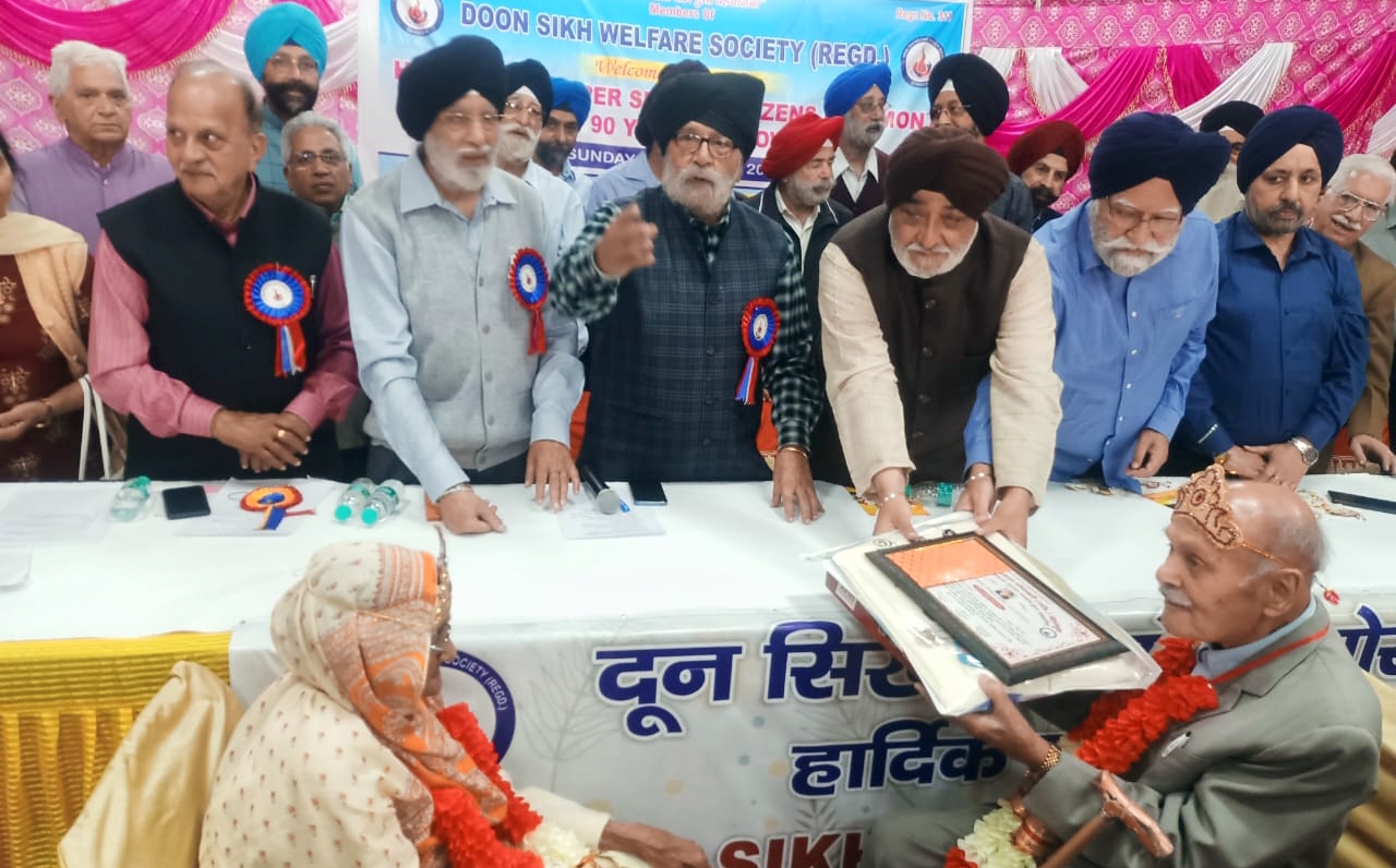 शहर की 43 वर्ष पुरानी सामाजिक संस्था दून सिख वेलफेयर सोसाइटी ने 90 वर्ष या अधिक आयु के 31 वरिष्ठ नागरिकों को गुरु नानक निवास सुभाष रोड में सम्म्मनित कर उनकी अहमियत के साथ समाज एवँ देश को एक नया सन्देश दिया है।