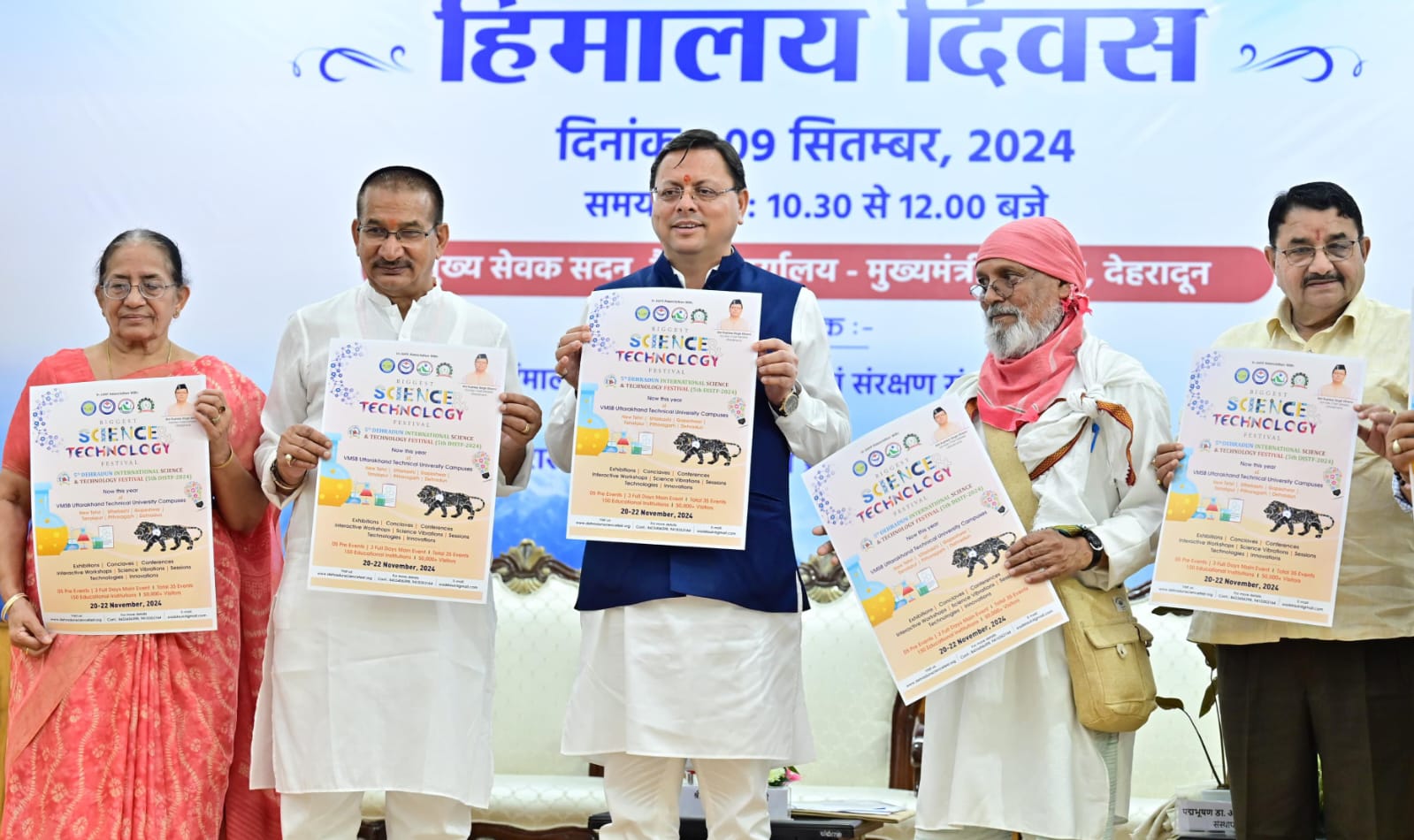 मुख्यमंत्री पुष्कर सिंह धामी ने सोमवार को हिमालय दिवस के अवसर पर मुख्यमंत्री आवास स्थित मुख्य सेवक सदन में आयोजित कार्यक्रम में प्रतिभाग किया। मुख्यमंत्री ने कहा कि हिमालय के सरोकारों से जुड़े विषयों के लिए महानिदेशक यूकॉस्ट दुर्गेश पंत के संयोजन में एक कमेटी बनाई जायेगी। इस अवसर पर उन्होंने यूकॉस्ट द्वारा आयोजित की जाने वाली राज्य स्तरीय पांचवें देहरादून, अन्तरराष्ट्रीय साइंस एण्ड टेक्नोलॉजी फैस्टिवल के पोस्टर का विमोचन किया। यह महोत्सव 06 जनपदों देहरादून, चमोली, उत्तरकाशी, टिहरी, बागेश्वर और पिथौरागढ स्थित इंजिनियरिंग कॉलेजों में किया जायेगा।