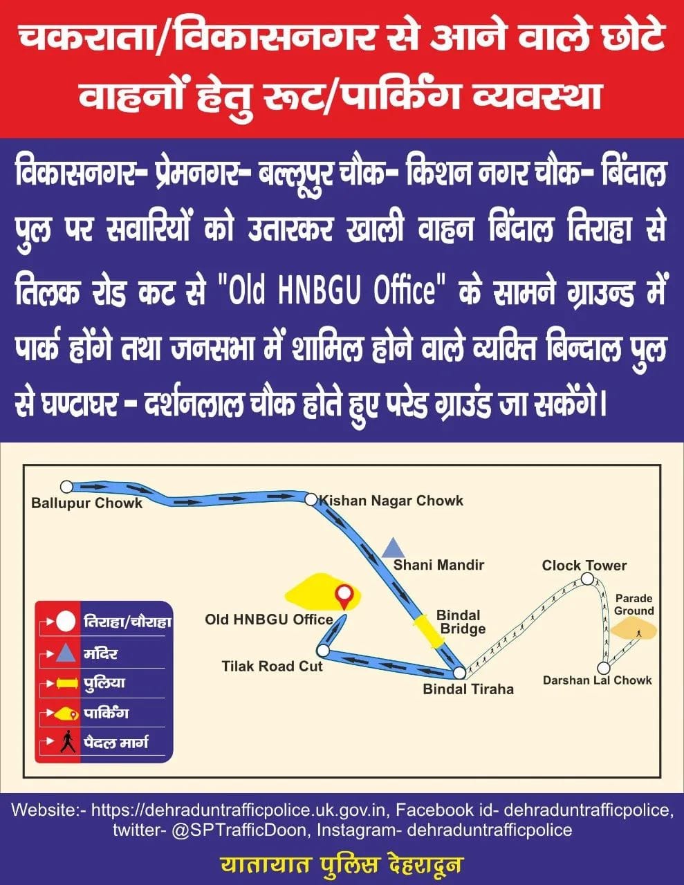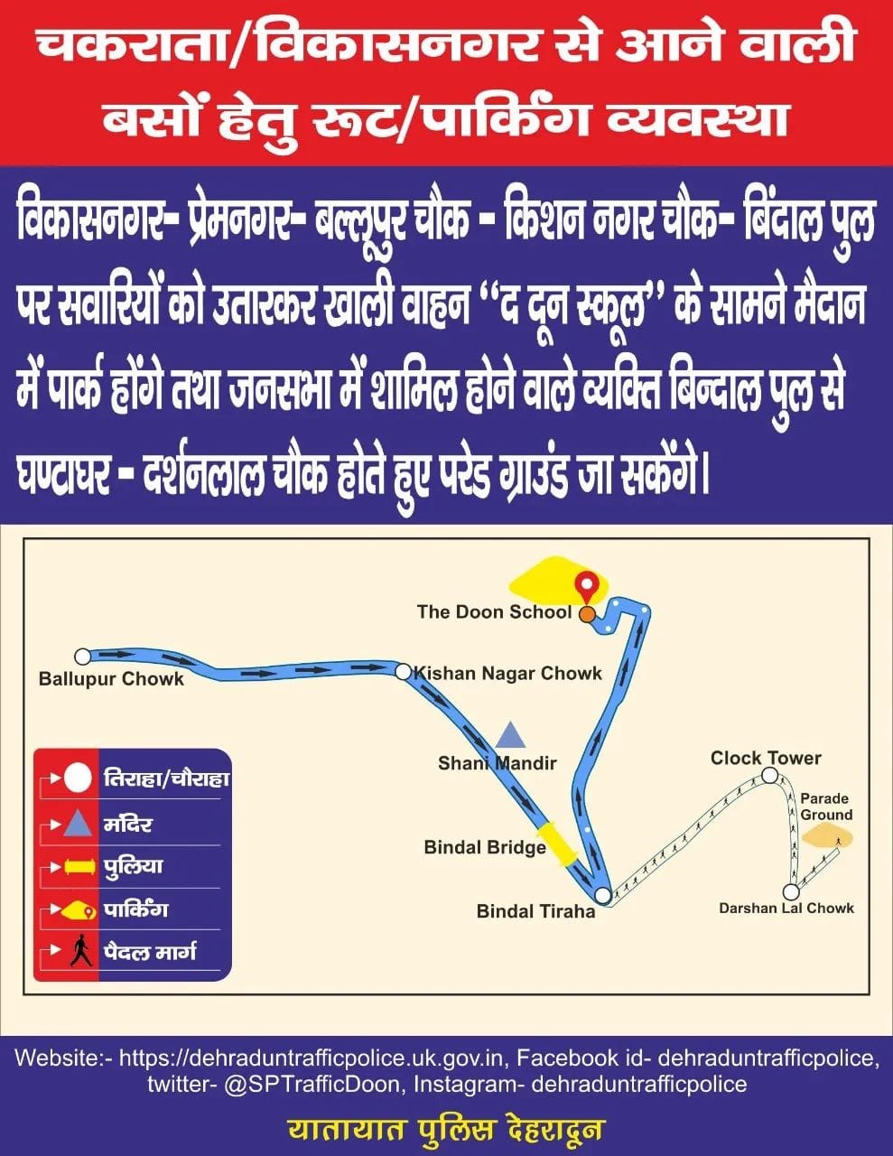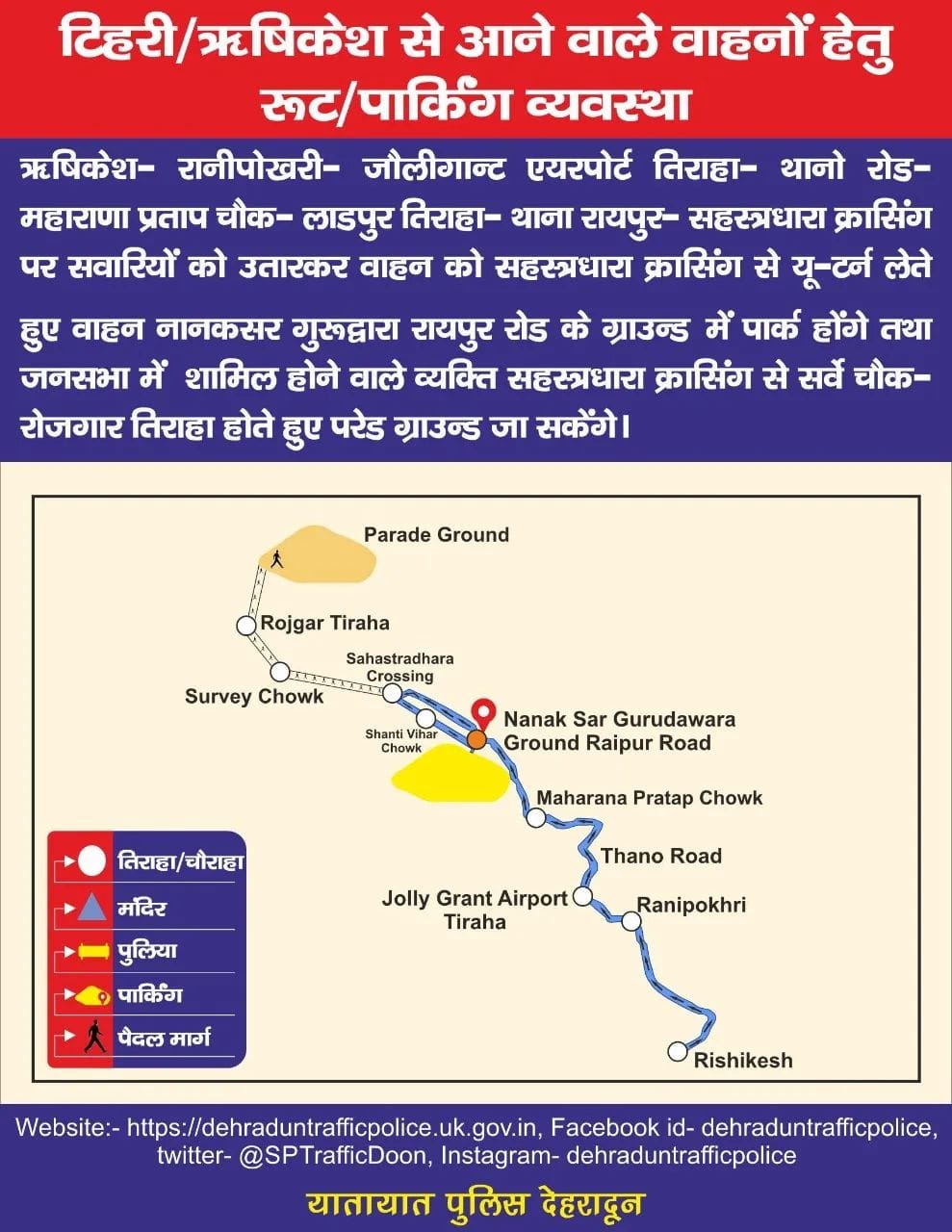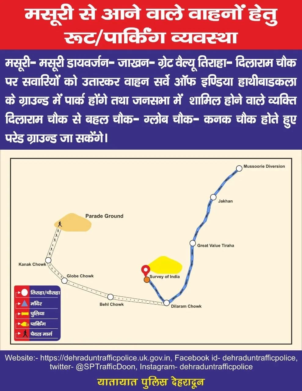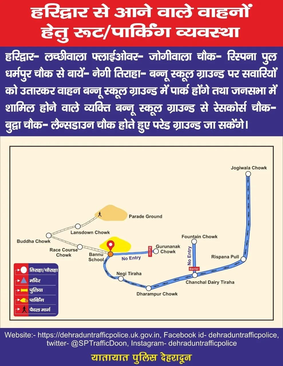 4 दिसम्बर को प्रधानमंत्री नरेंद्र मोदी के देहरादून कार्यक्रम के मद्देनजर ट्रैफिक रूट एवं पार्किंग प्लान इस प्रकार रहेगा देखिए पूरा प्लान…