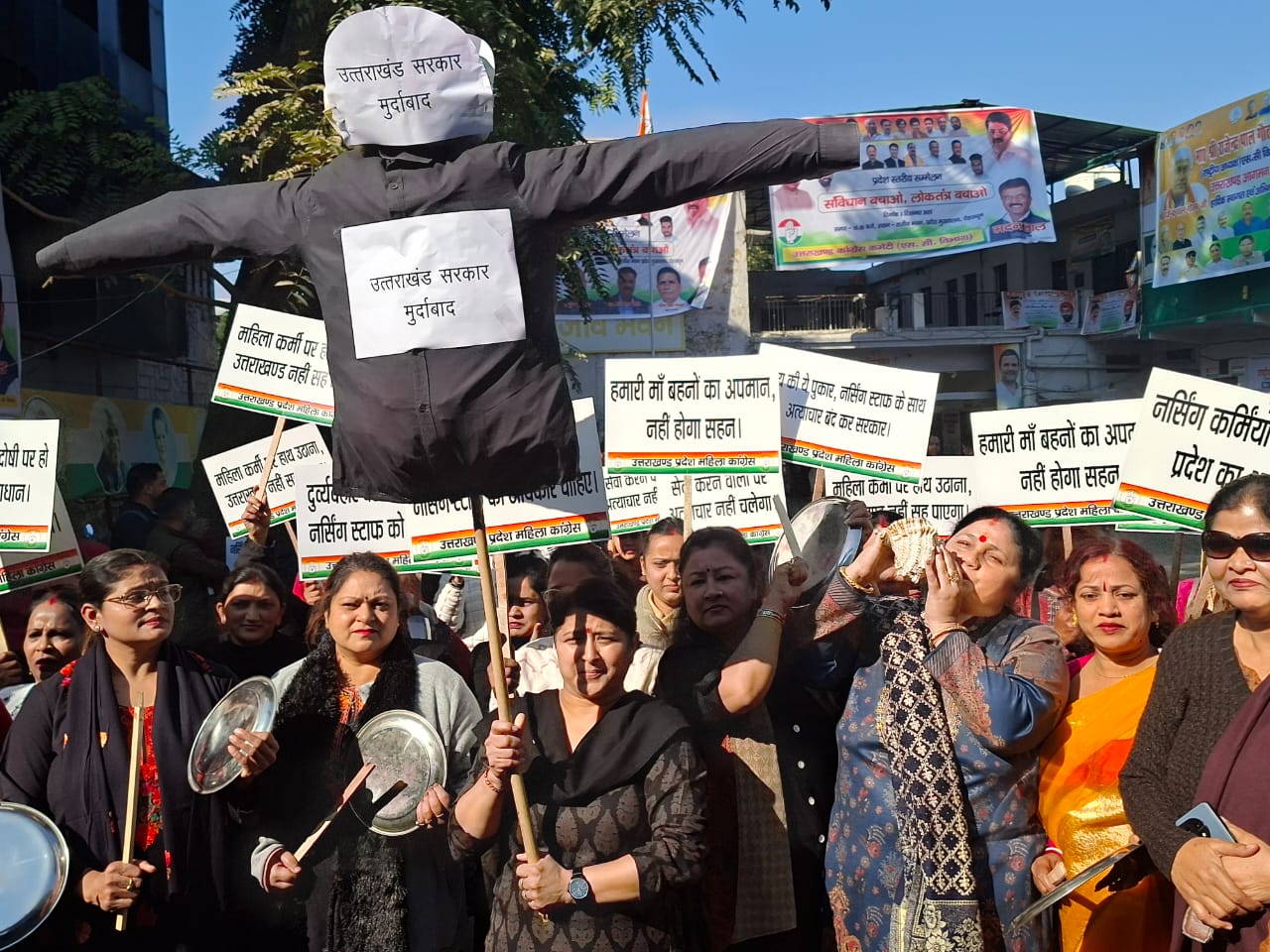 प्राप्त जानकारी के अनुसार उत्तराखंड महिला कांग्रेस ने प्रदेश अध्यक्ष ज्योति रौतेला के नेतृत्व में प्रदेश कांग्रेस मुख्यालय से चलकर पुलिस मुख्यालय पर जोरदार प्रदर्शन और घेराव किया। इस विरोध कार्यक्रम के दौरान बड़ी संख्या में नर्सिंग बेरोजगार युवतियाँ भी उनके साथ उपस्थित रहीं।