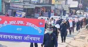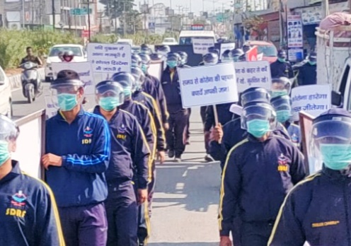 SDRF द्वारा जोलीग्रांट से भानियावाला क्षेत्र में कोविड संक्रमण से बचाव के सम्बंध में आम जनसमुदाय को जागरूक करने हेतु फ्लैग मार्च , मार्च विद मास्क किया, SDRF उत्तराखंड पुलिस द्वारा प्रदेश के विभिन्न जनपदों में इस प्रकार के फ्लैग मार्च किये जा रहे है साथ ही आमजनमानस को कोविड संकमण से बचाव हेतु सोशल मीडिया , व्याख्यान, डिजिटल ट्रेनिग ,पैम्पलेट वितरण, कोविड निर्देश पुस्तिका, वितरण , आडियो और वीडियो के माध्यम से जागरूकता,जैसे अनेक माध्यमों से जागृत किया जा रहा है।