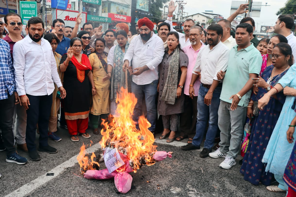 महानगर कांग्रेस कमेटी कार्यवाहक अध्यक्ष डॉ.जसविन्दर सिंह गोगी के नेतृत्व में शनिवार को महानगर कांग्रेस कार्यकर्ताओं ने पौडी जनपद के यमकेश्वर ब्लाक में गंगाभोगपुर स्थित भाजपा के पूर्व मंत्री के पुत्र के रिसॉर्ट में रिसेप्शनिस्ट युवती के साथ हुई घटना के विरोध मेें भाजपा सरकार कां पुतला दहन किया।