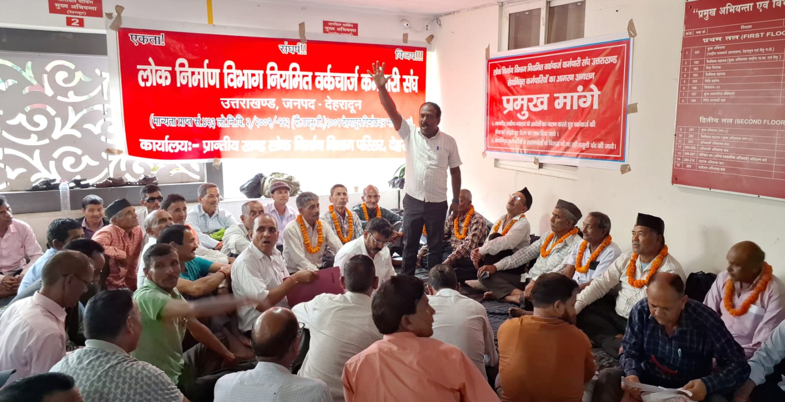 अपनी मांगों के समर्थन में PWD के सेवानिवृत्त वर्कचार्ज कर्मचारी प्रमुख अभियन्ता लो0नि0वि0 कार्यालय यमुना कालोनी पर आमरण अनशन पर बैठ गए।