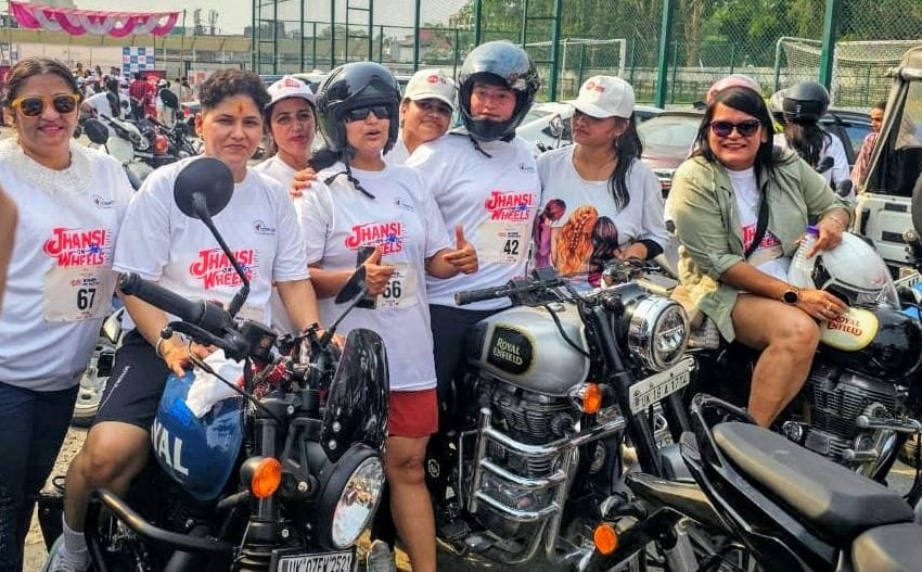 तेजस्विनी चेरिटेबल ट्रस्ट के 3 साल पूरे होने पर बाइक रैली में महिलाओं ने झांसी ऑन व्हील्स में अपनी स्कूटर बाइक समेत लिया हिस्सा
