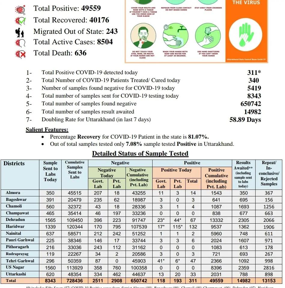 राज्य में आज 311 और नए मरीजो में कोरोना पॉजिटिव की पुष्टि हुई है।
